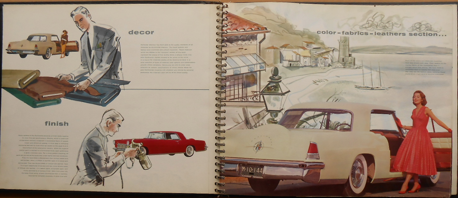 1956-57 Lincoln Continental Mark II dealer album, leather bound cover, 19 x 15, has uph, color samples