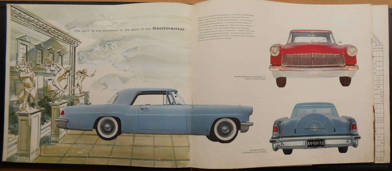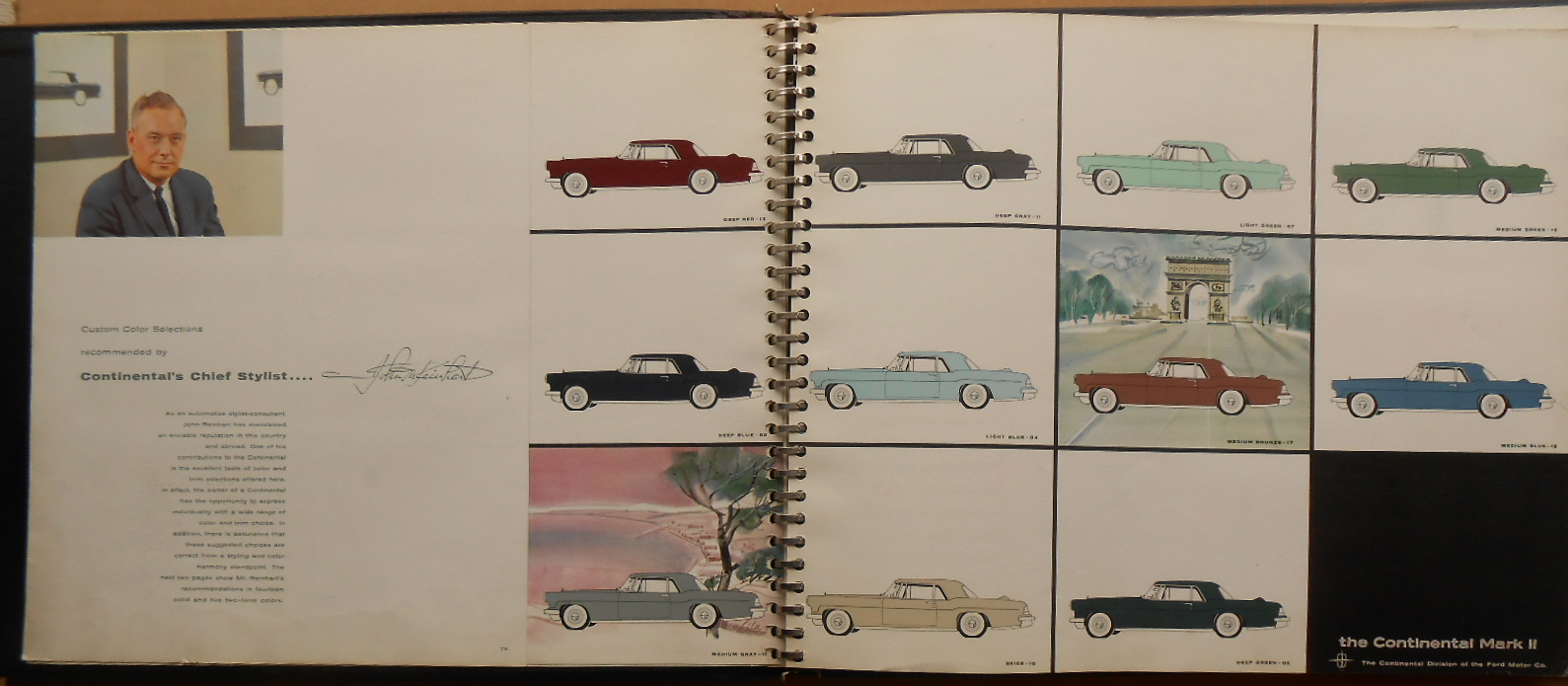 Lot 106: 1956-57 Lincoln Continental Mark II dealer album, leather bound cover, 19 x 15, has uph, color samples