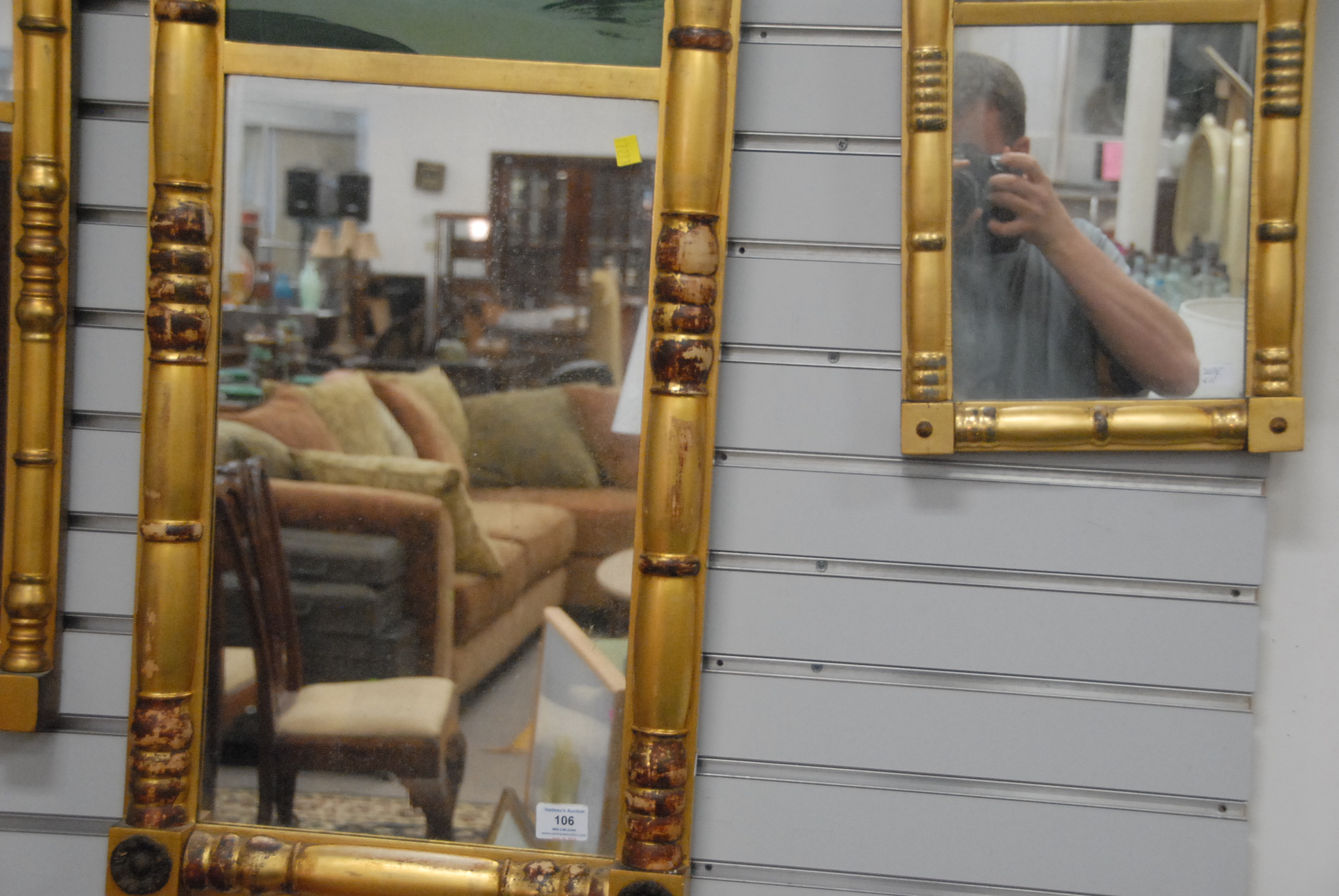 Lot 106: Four piece lot including three Federal two part mirrors and one ogee mirror, hts. 2in. to 36in.