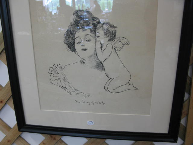 Four piece lot to include pen and ink, painting, print along with multimedia print