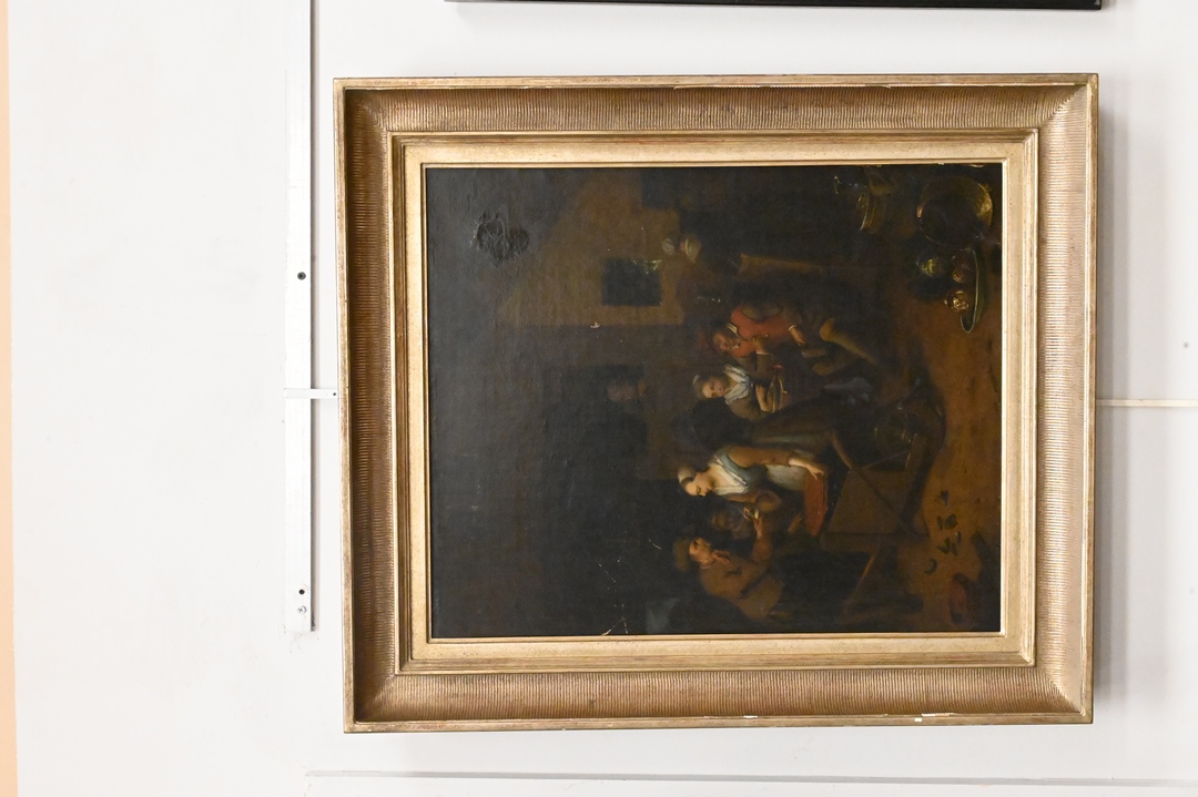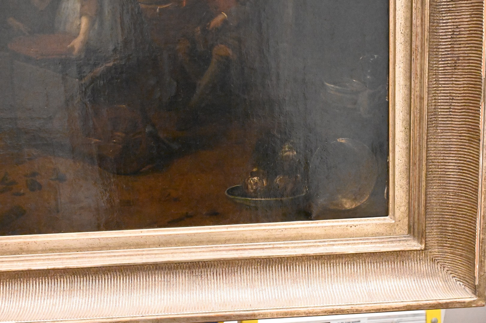 Jan Baptist Lambrechts (1680 – 1731), oil on canvas, oyster seller, unsigned, 23″ x 18 3/4″.