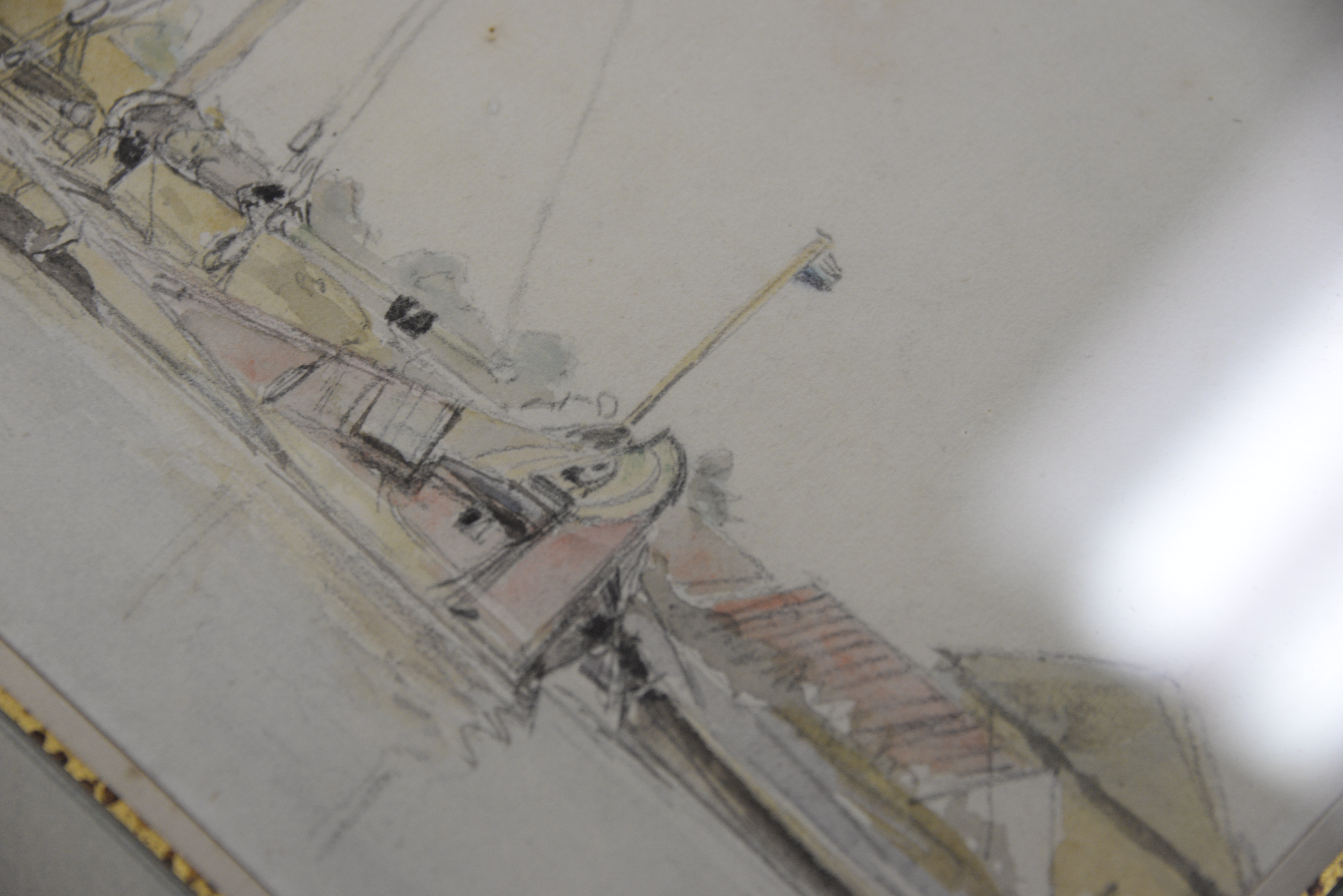 JOHAN J. BARTHOLD JONGKIND 1819-1891 River Scene watercolor and pencil on paper signed lower left Jongkind Hammer Galleries stamp on verso #20408-4 8 1/4 x 9 3/4 Provenance: Hammer Galleries 1968 Current Private Collection Exhibited: Hammer Galleries – Drawings by the Masters December 9 through December 27, 1968 Included Documentation: Copy of Hammer Galleries original bill of sale June 14, 1968. Copy of Hammer Galleries Drawings by the Masters December 1968 edition photograph #34. Also being sold with original folder from Hammer Galleries containing letter with Hammer Galleries #20408-4, title, artist name and biography, and photograph.