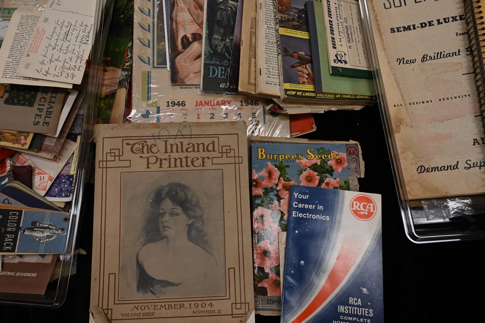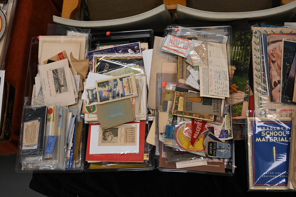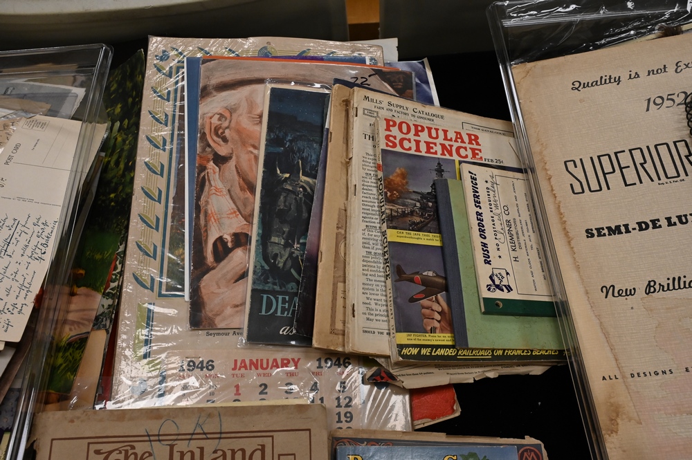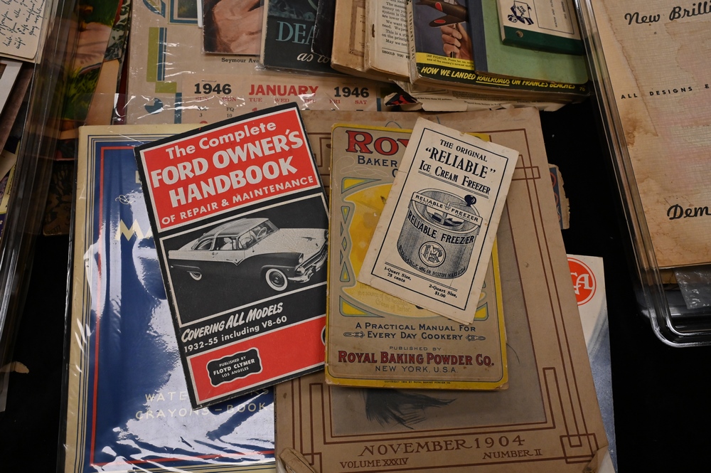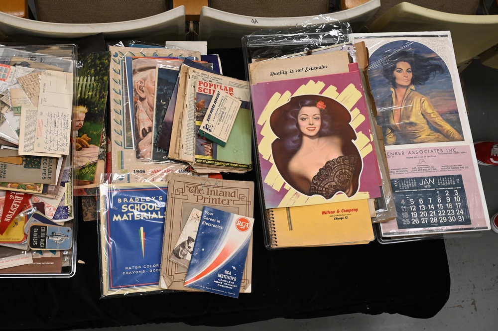 Lot 106: Large Lot of Ephemera, to include calendars, almanacs, magazines, car manuals, World’s Fair, etc.