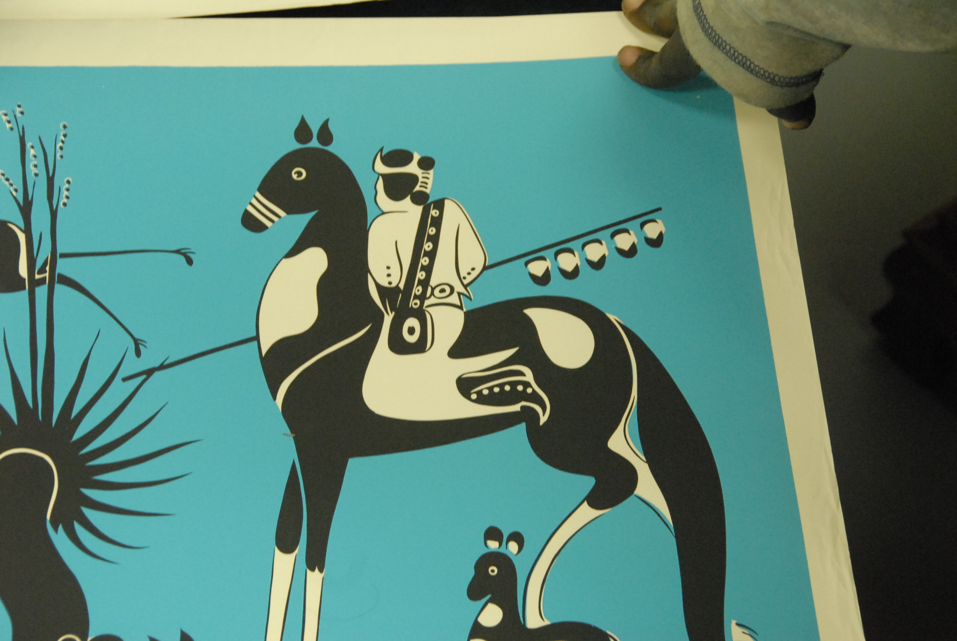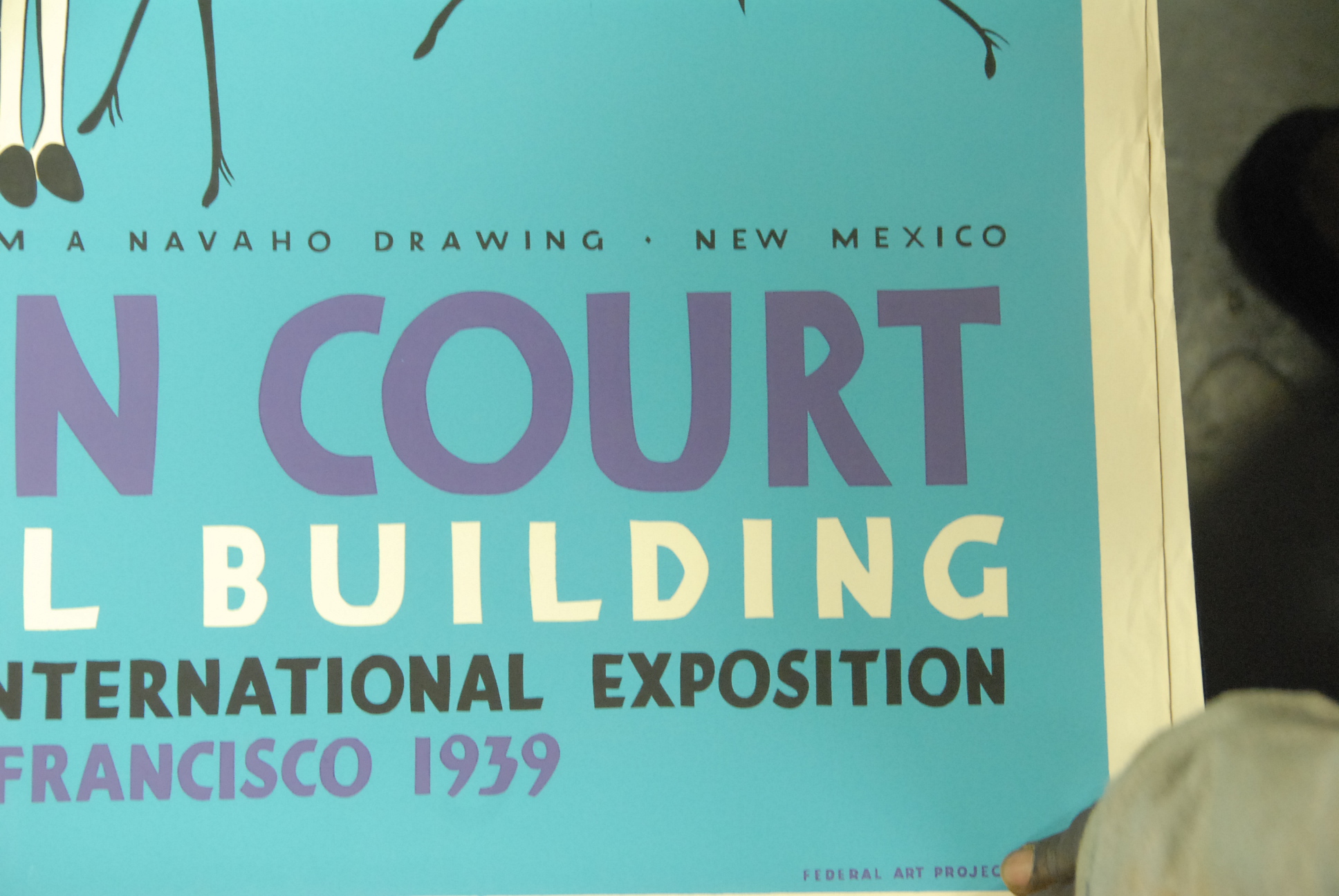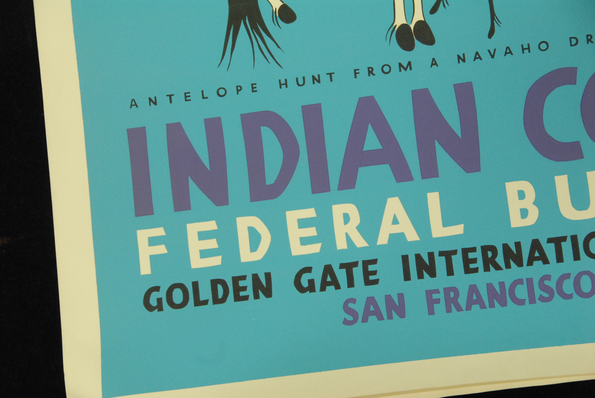 Louis Siegriest 1899-1989 poster Indian Court Federal Building Golden Gate International Exposition San Francisco, 1939: Antelope hunt from a Navaho drawing, New Mexico.