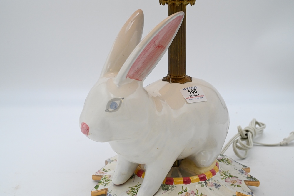 Lot 106: Mackenzie-Childs Rabbit Table Lamp, height 28 inches.