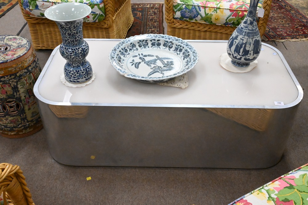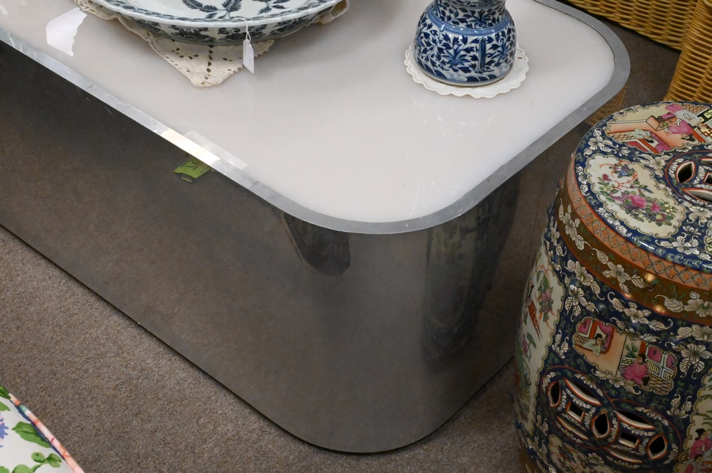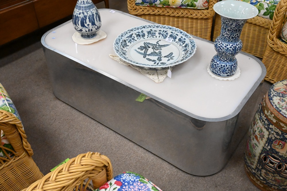 Mid Century Coffee Table, having chrome base, height 15 1/2 inches, top 24″ x 48″.