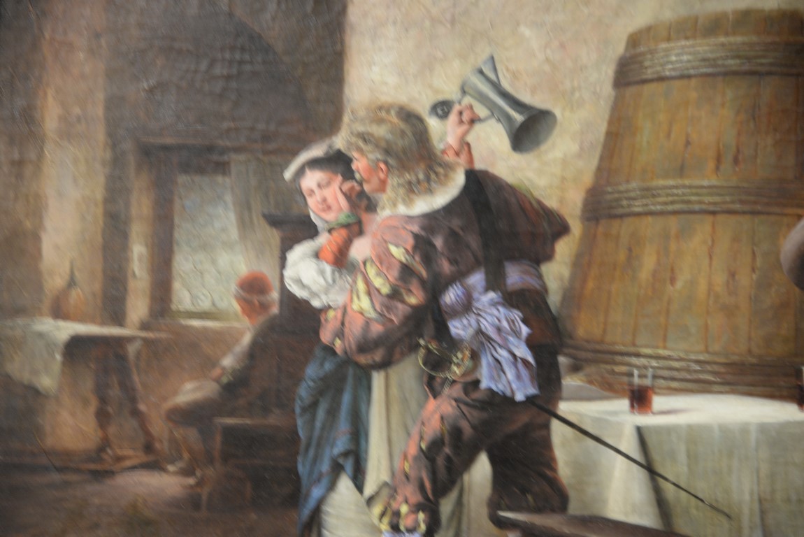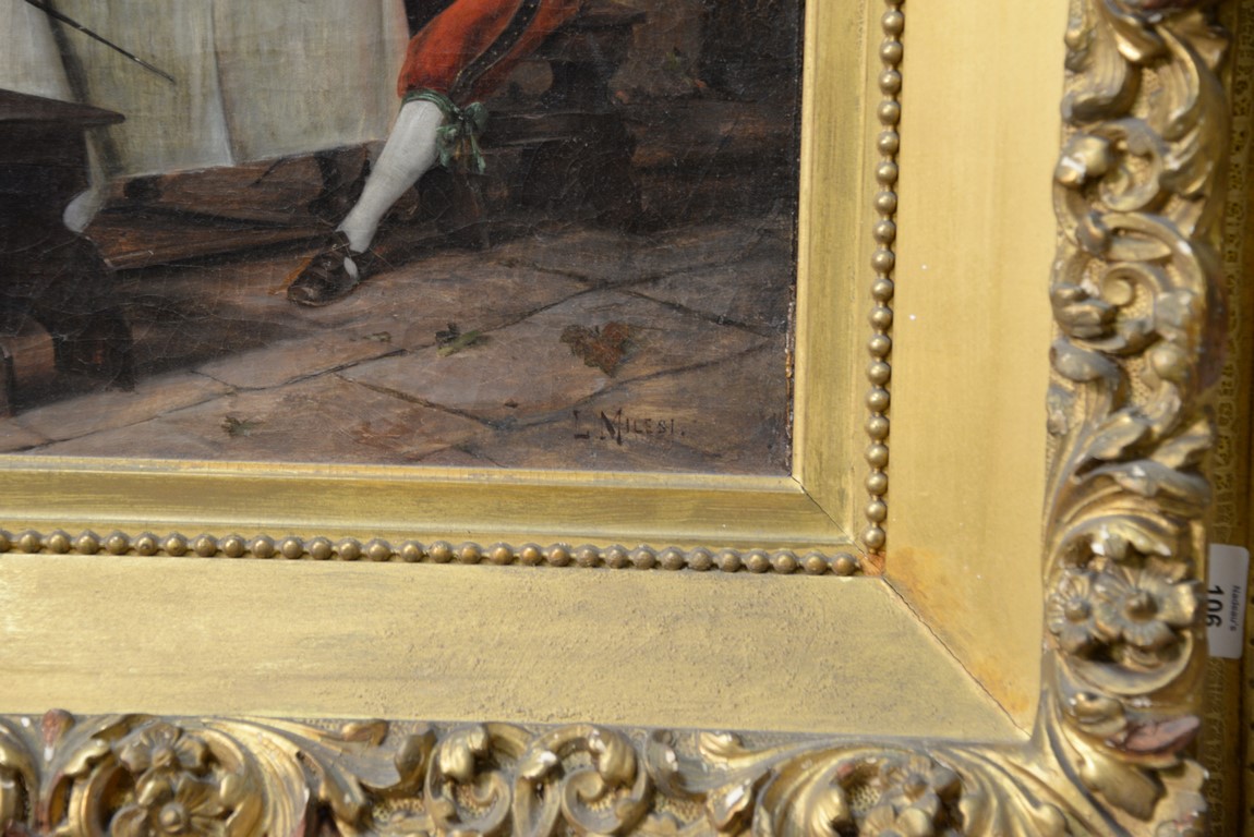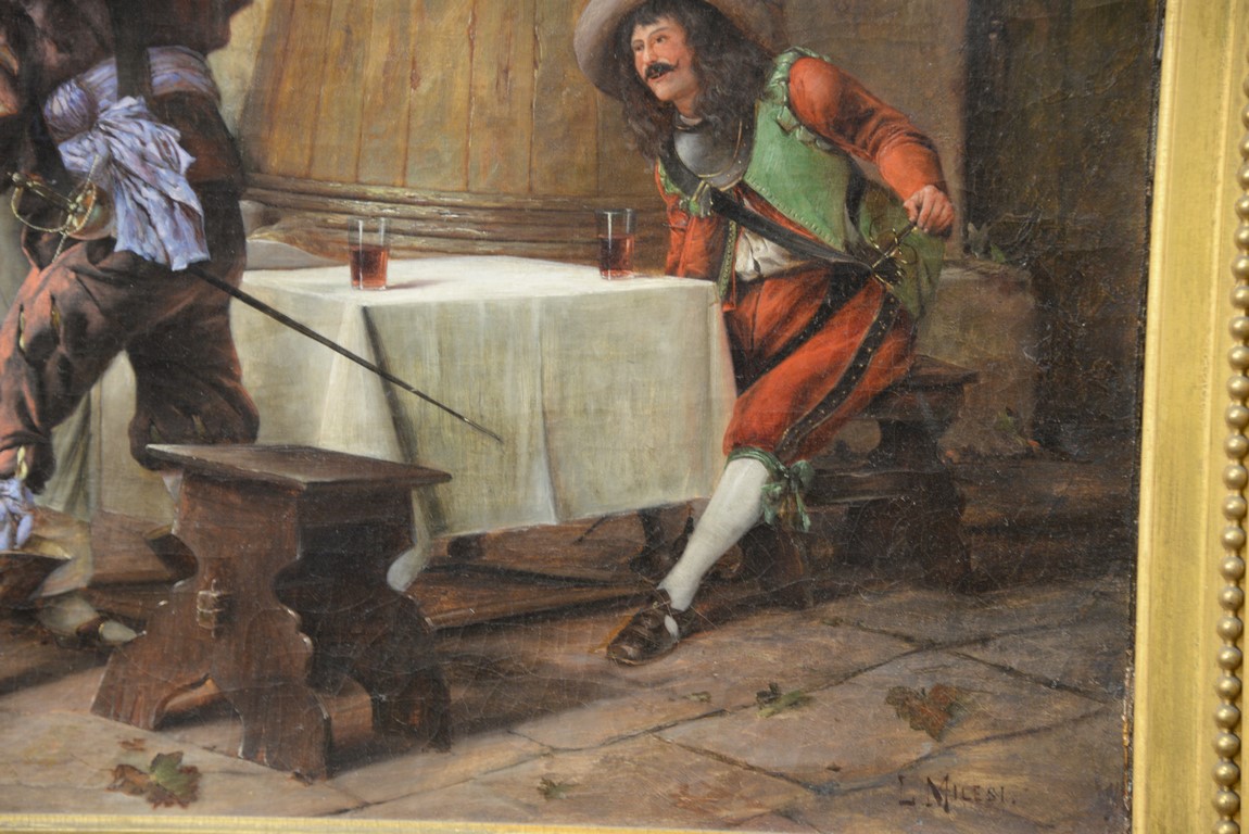Lot 106: Milesi 19th Century Italian Drinking at the Tavern oil on canvas signed lower right: L