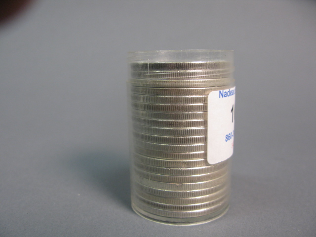 Roll of 20 Morgan silver dollars.