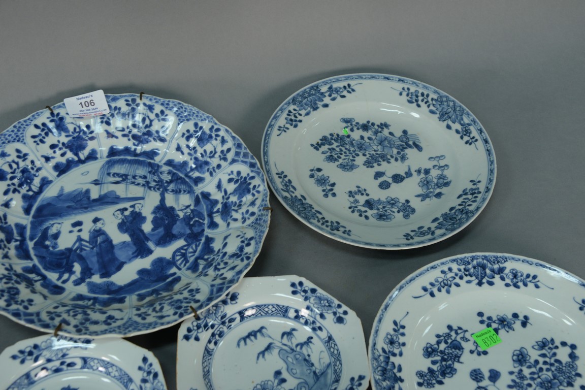 Lot 106: Thirteen piece lot of Chinese blue and white porcelain to include a deep plate, Chinese plate with five boys small chip on foot, t…