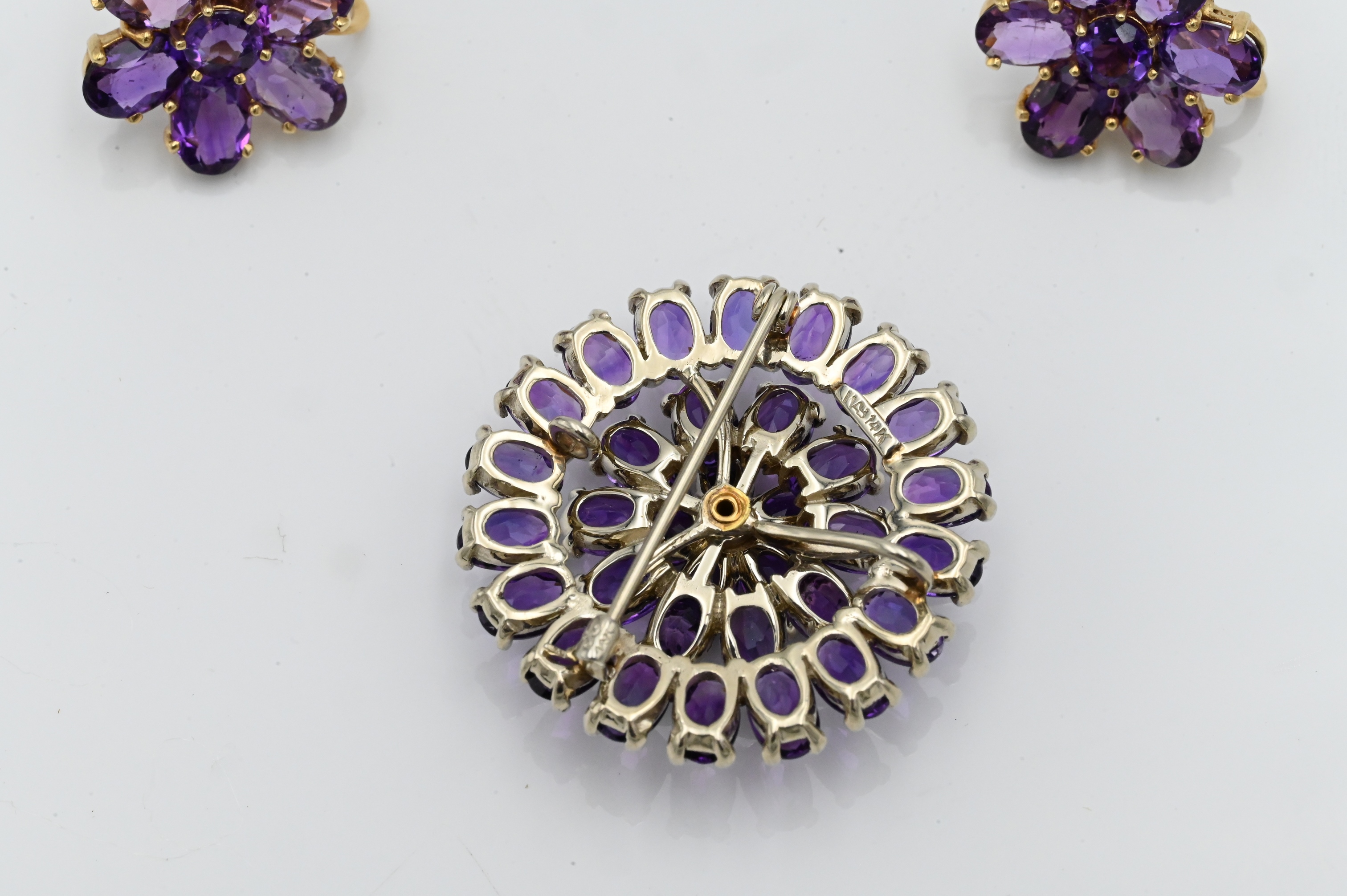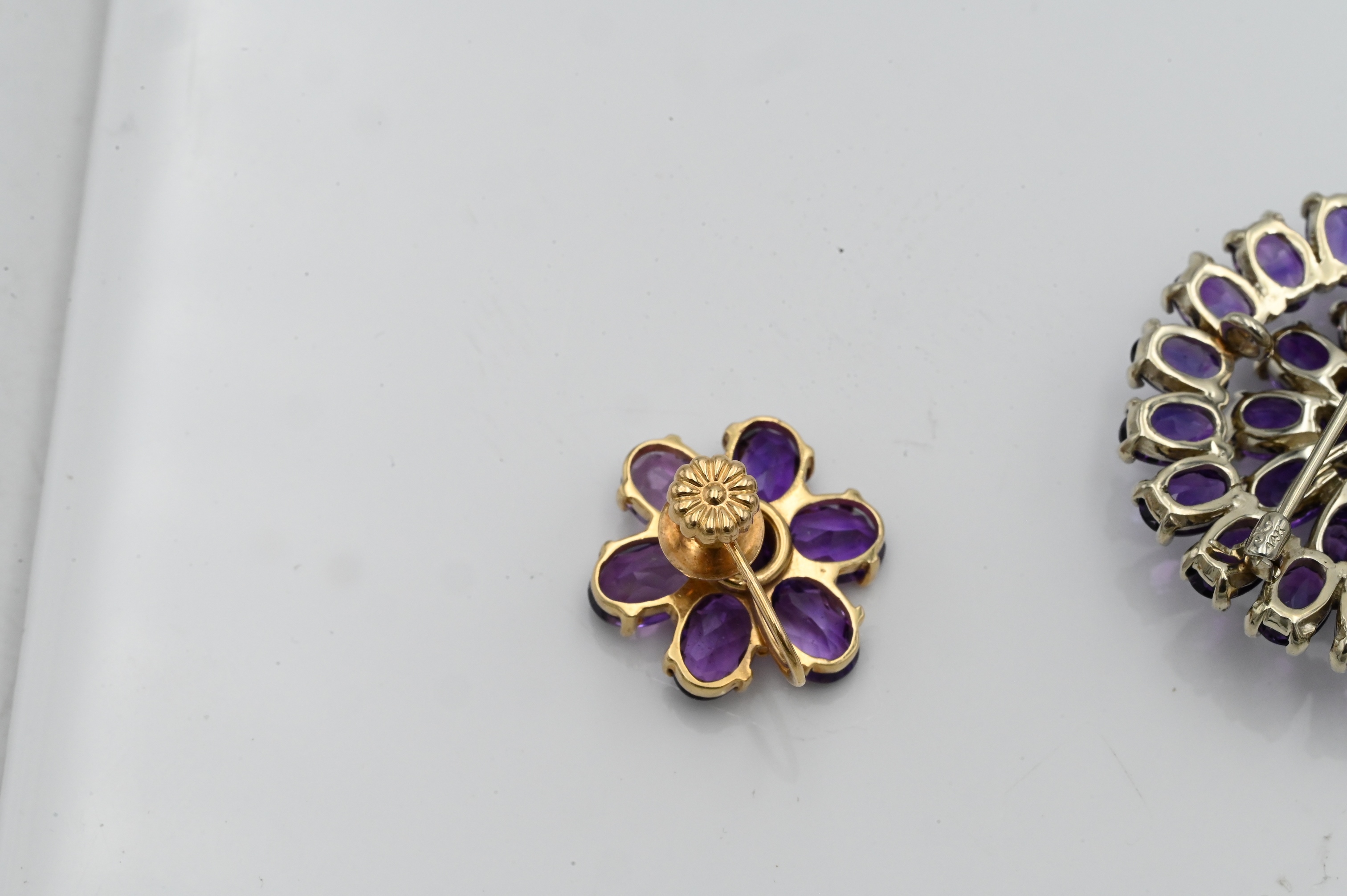 Lot 106: Three Piece 14K White Gold and Amethyst Brooch/Pendant