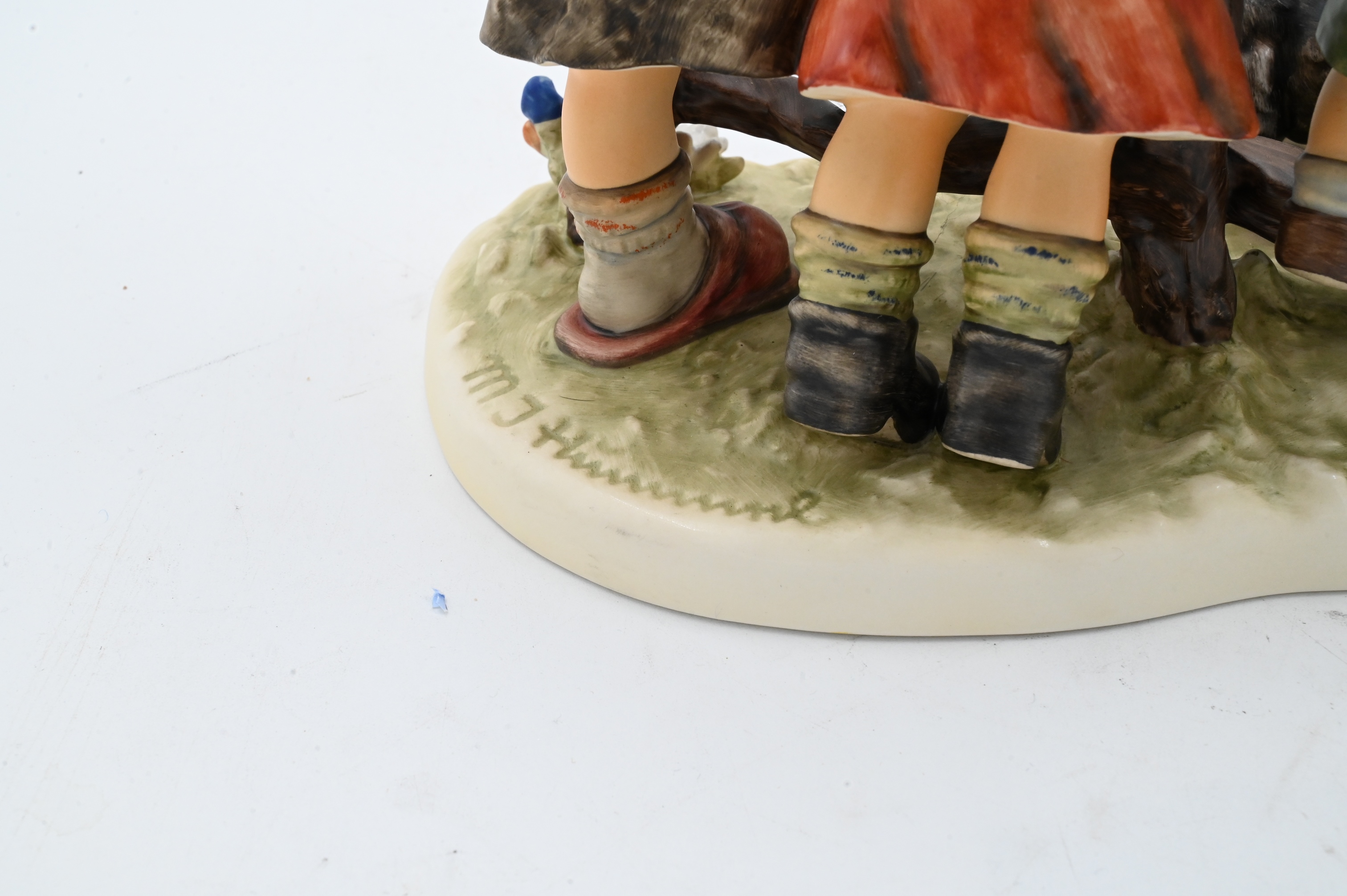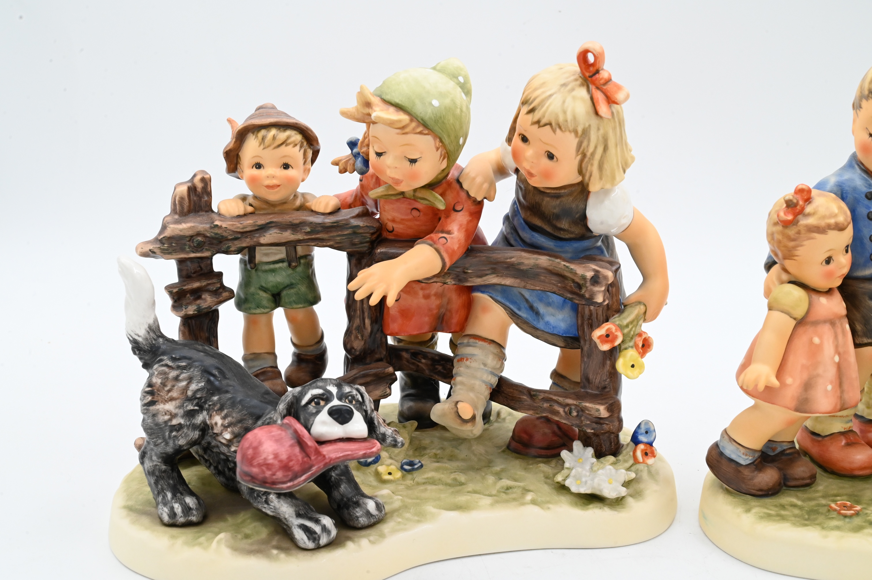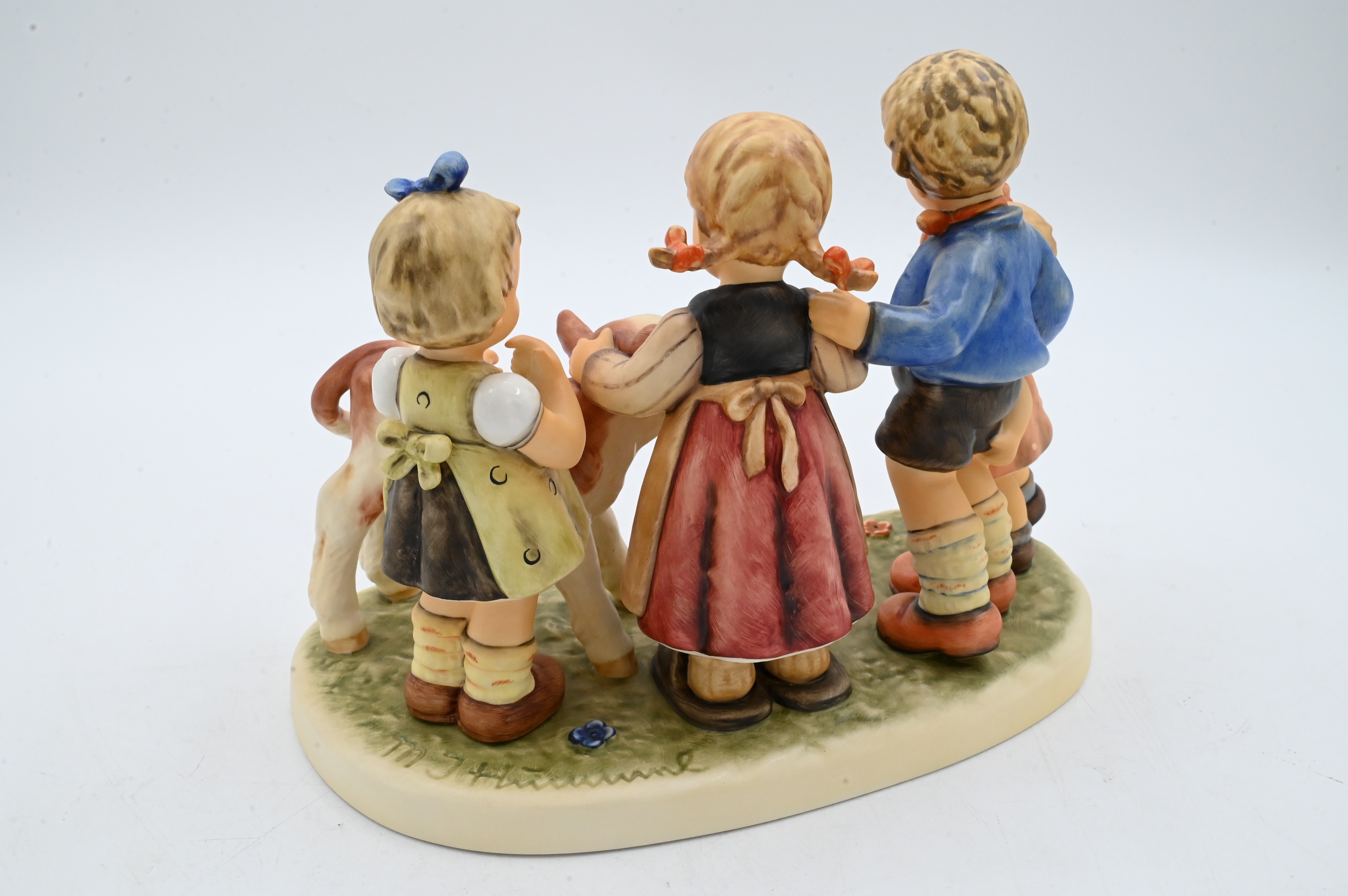 “Troublemaker” featuring three children on a fence and a dog with a shoe