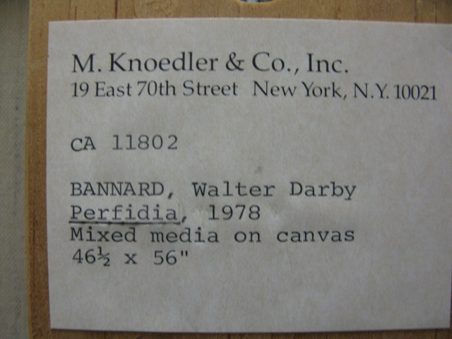 Walter Darby Bannard 1934 PERFIDIA mixed media on canvas signed on back W.B. Bannard with label reading Rev M. Knoedler & Co., NY