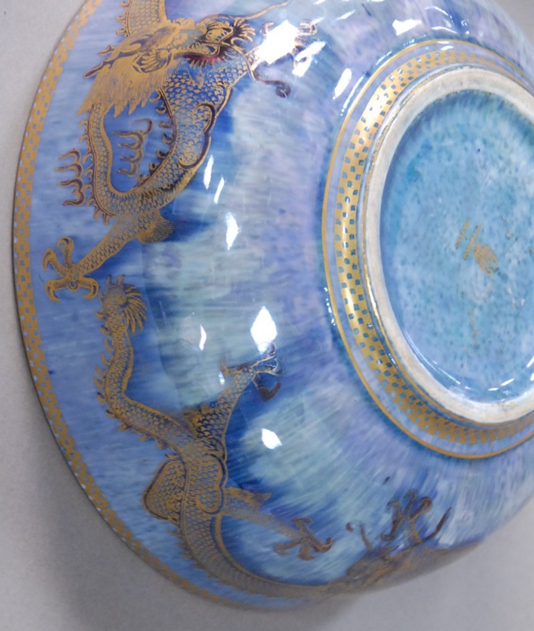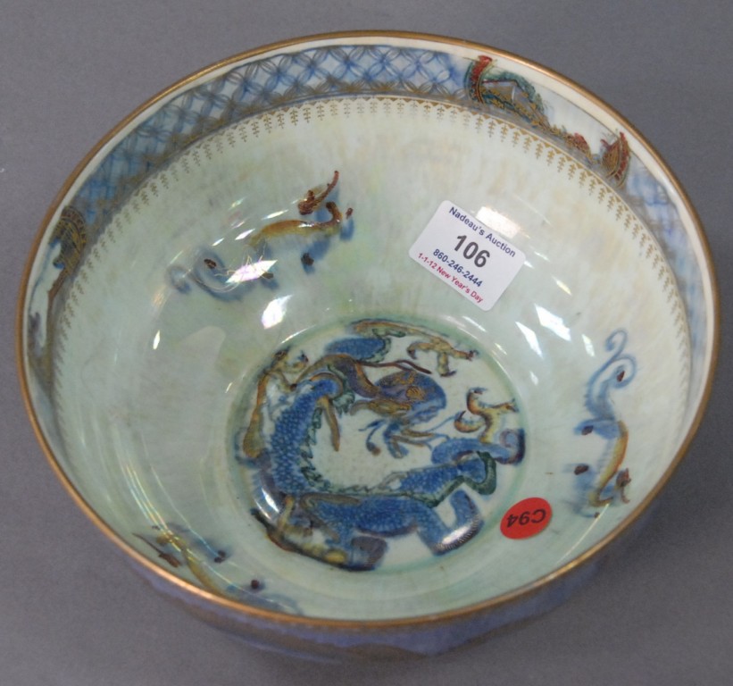 Wedgwood Fairy Luster bowl, Dragon Luster pattern, numbered Z4829. height 3 5/8in. diameter 8 7/8in. crack in glazing