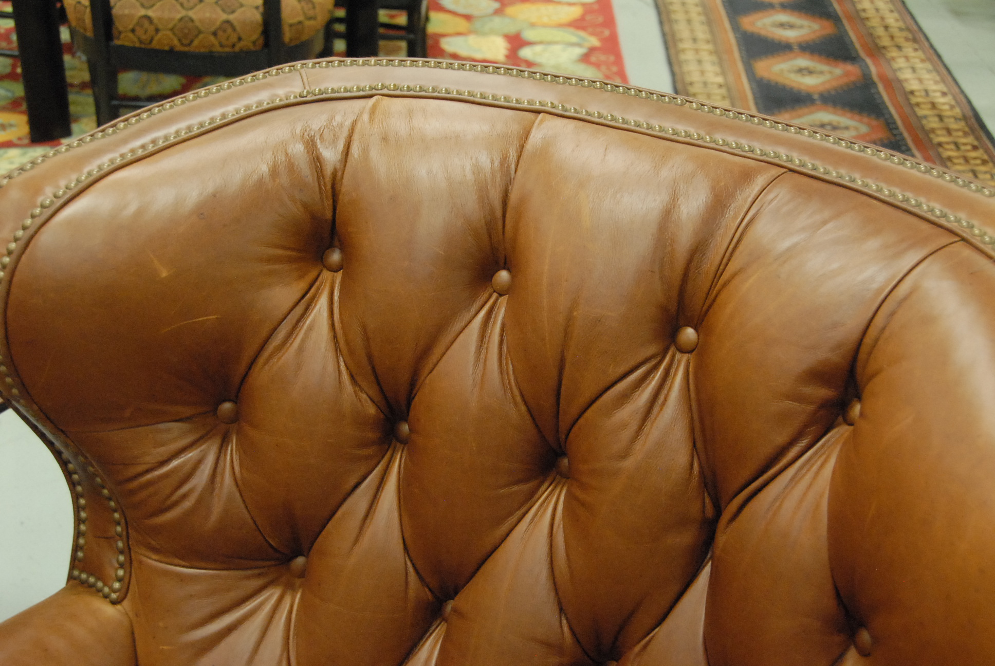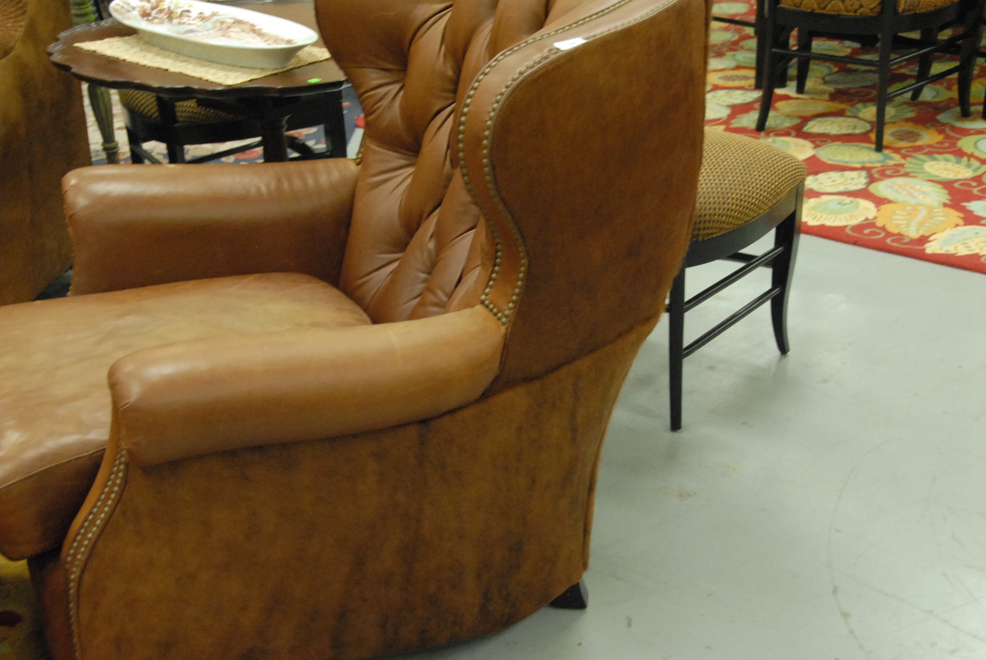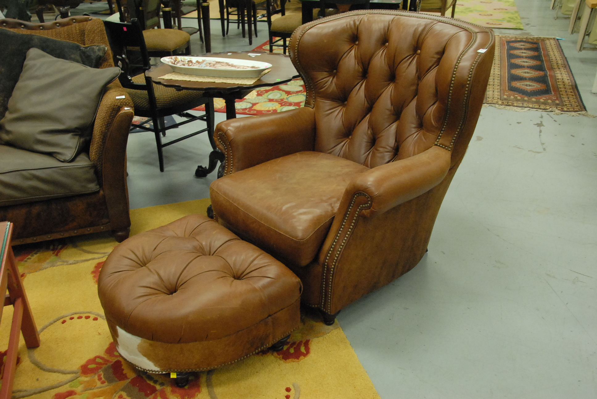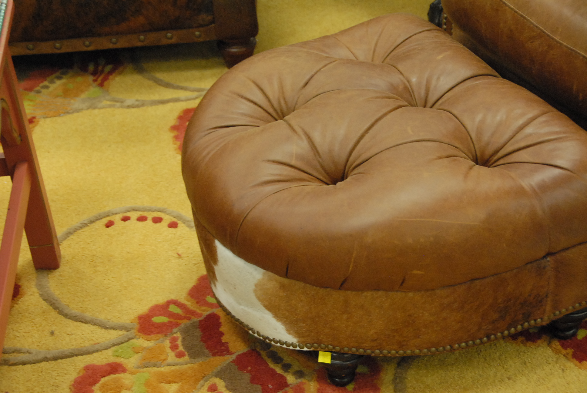 Bradington Young leather and cowhide tufted Bastien stationary chair 828-25 with ottoman, ht. 41in. wd. 37in. dp. 41in.