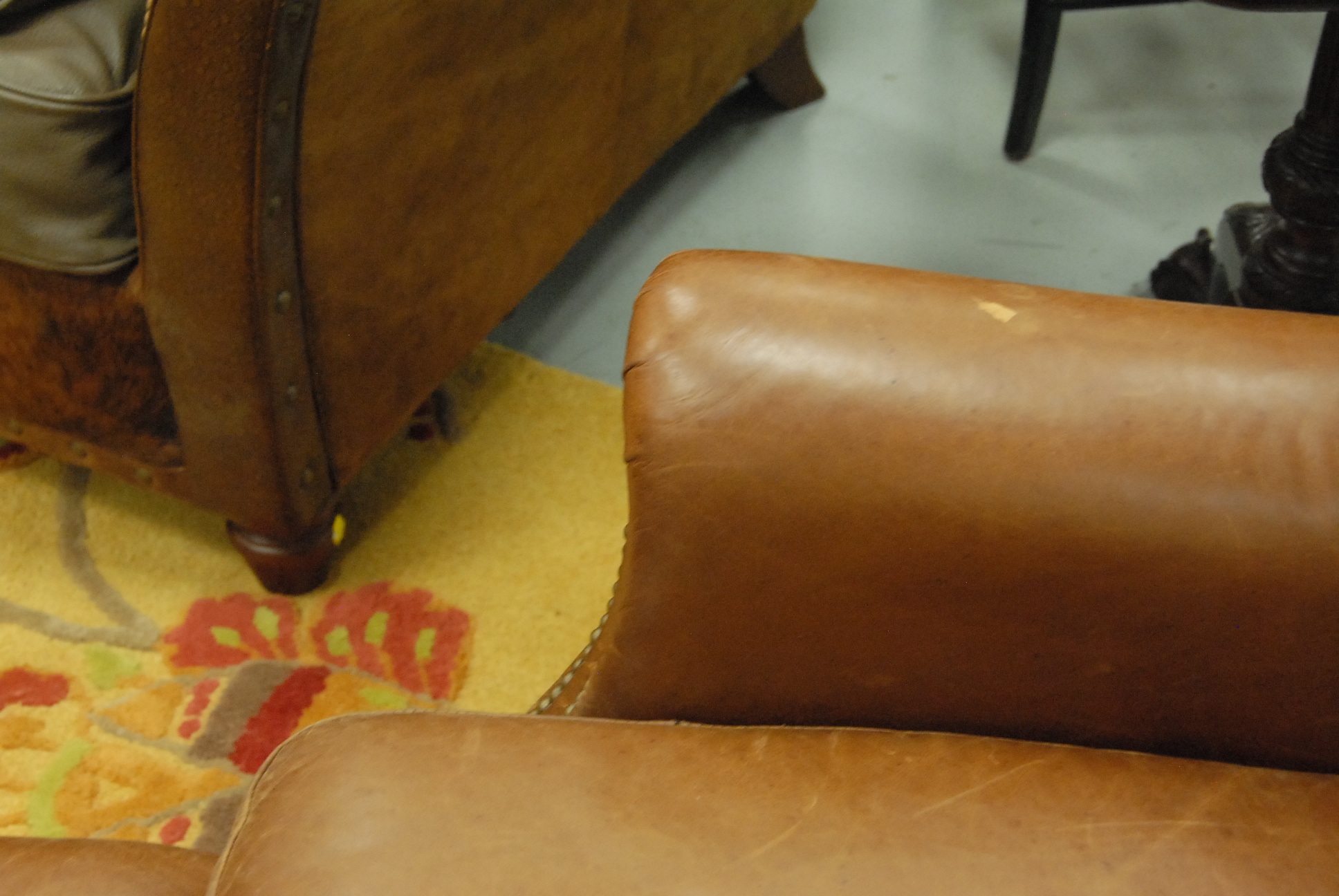 Lot 107: Bradington Young leather and cowhide tufted Bastien stationary chair 828-25 with ottoman, ht. 41in. wd. 37in. dp. 41in.