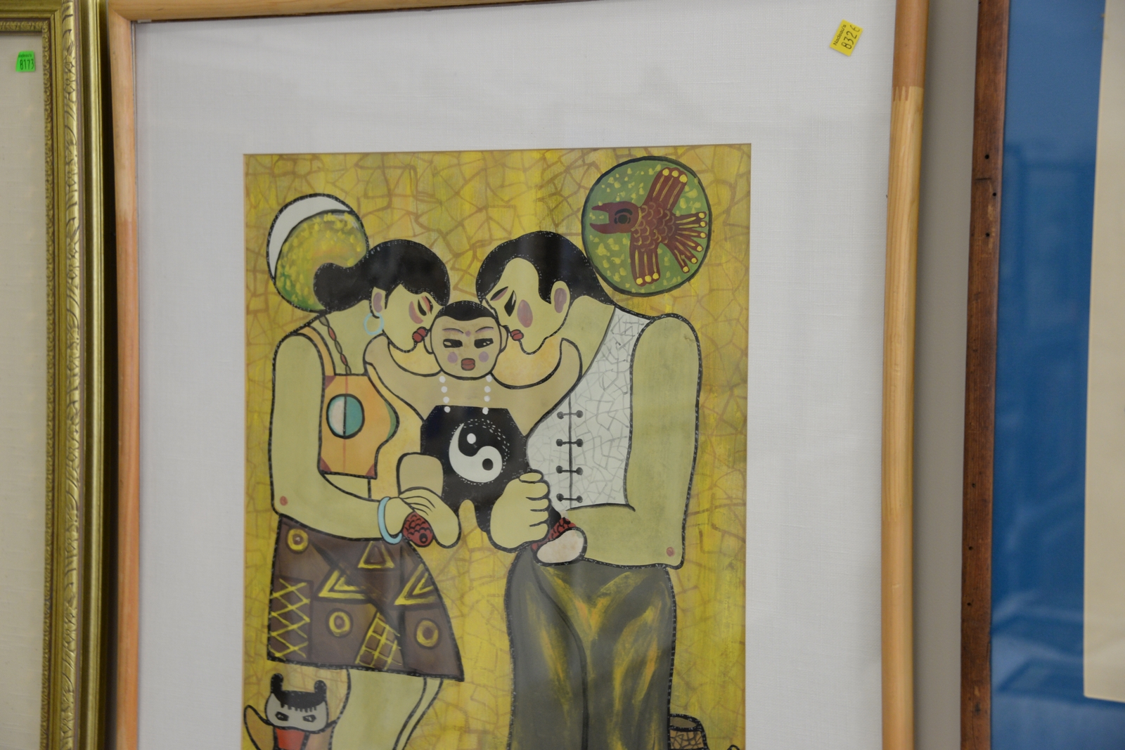 Lot 107: Four framed pieces to include three Joan Miro prints and a mixed media by Tang Pak Lee Treasure. sight sizes 11 x 8 to 23 x 17 …