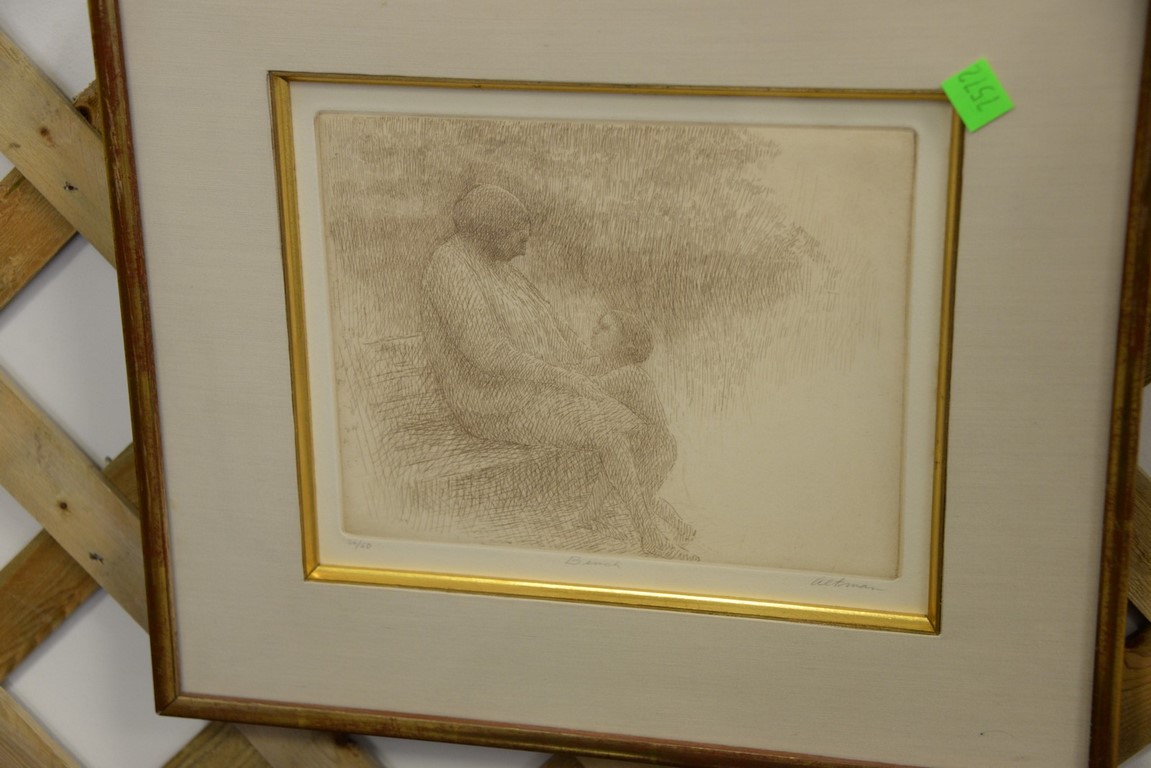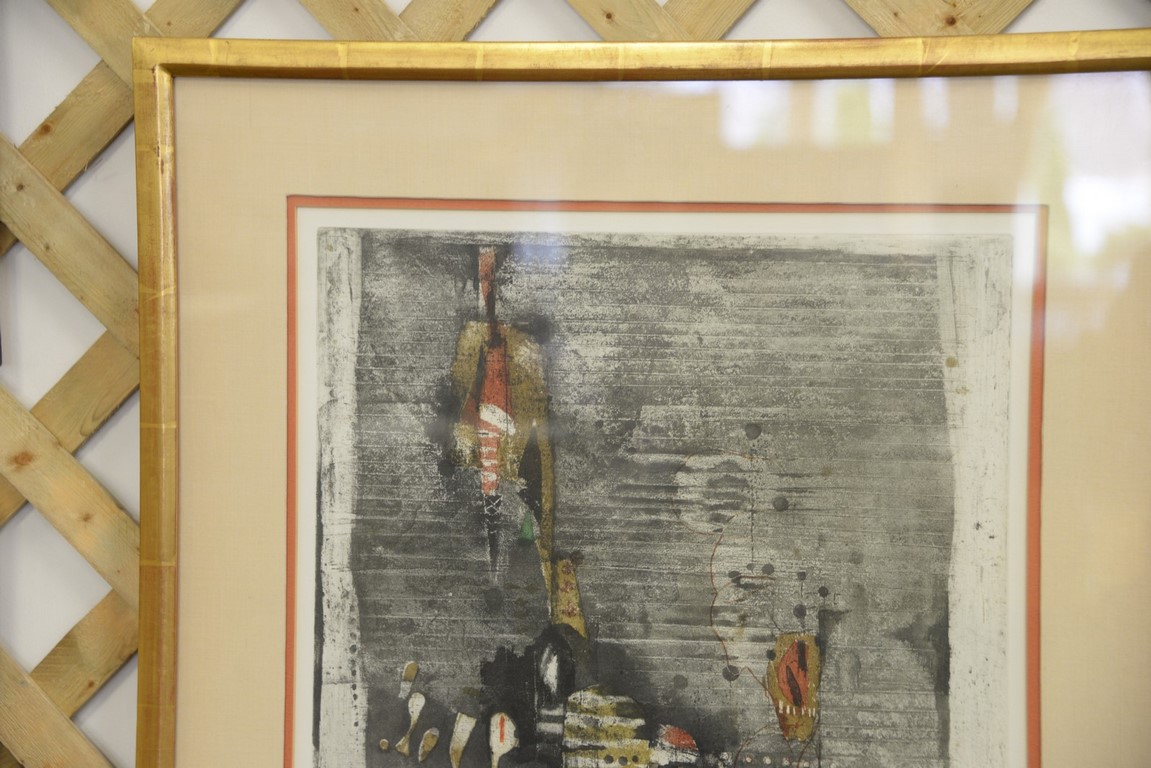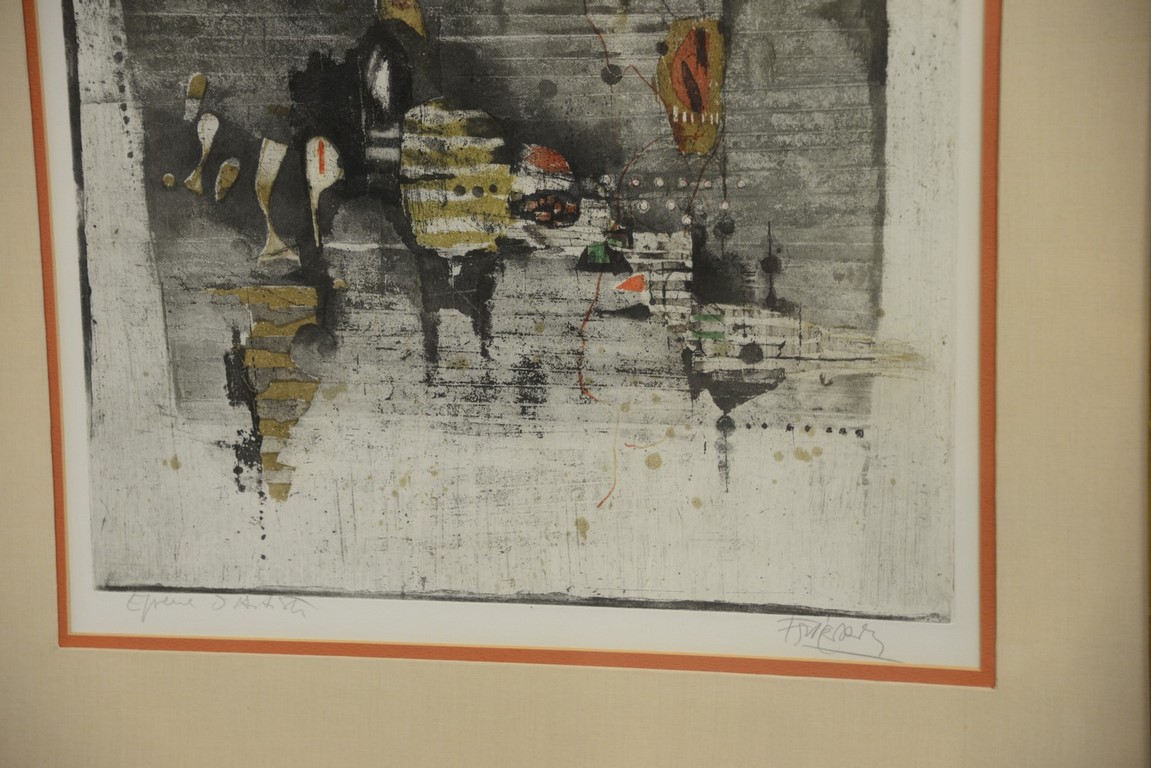 Lot 107: Harold Altman 1924-2003 two engravings including engraving 36/50 Bench signed lower right Atman 8 x 10 and Abstract colored en…