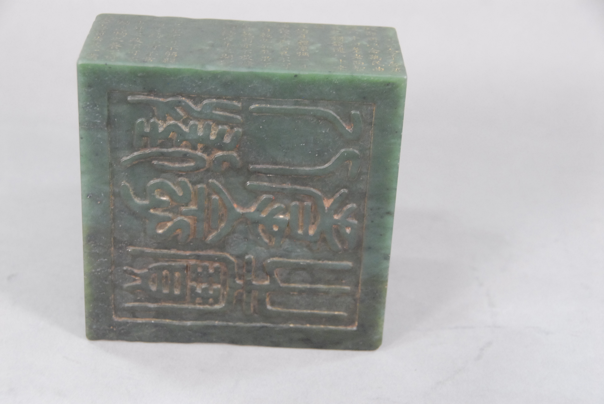 Lot 107: Large spinach jade square seal, solid square