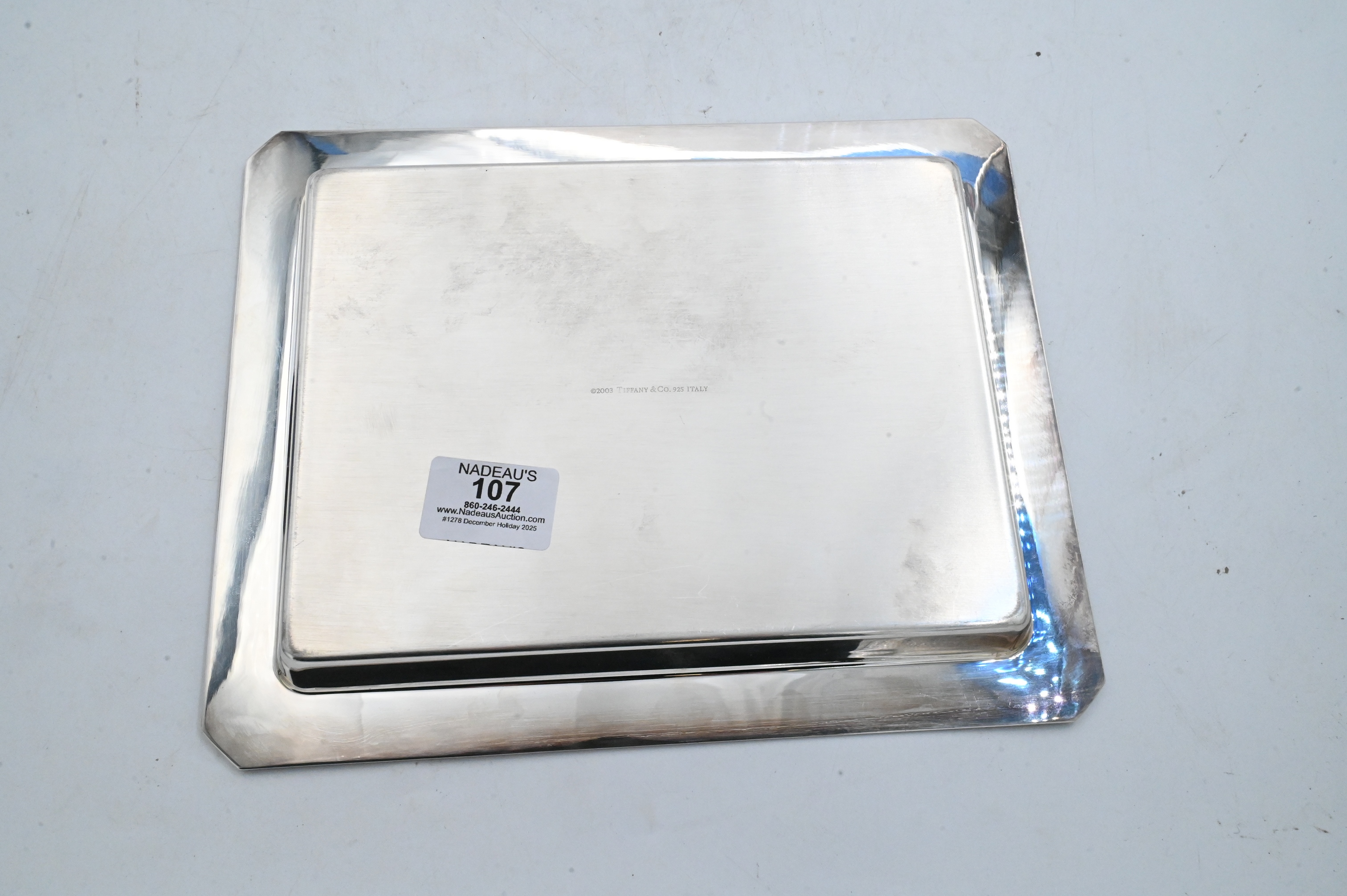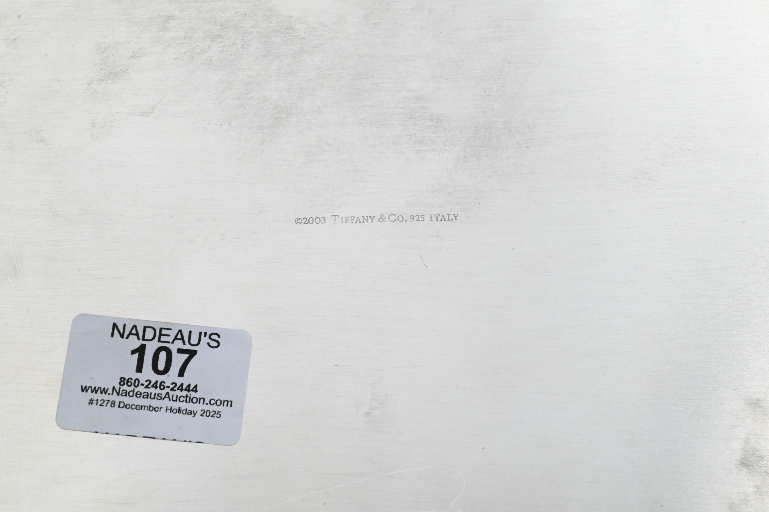 Rectangular form with beveled corners and smooth polished surface, marked ©2003 Tiffany & Co. .925 Italy.