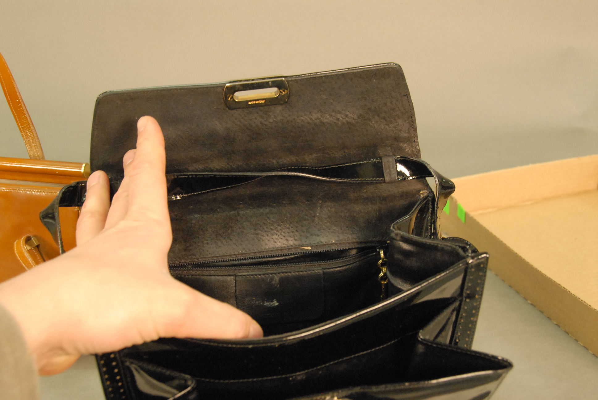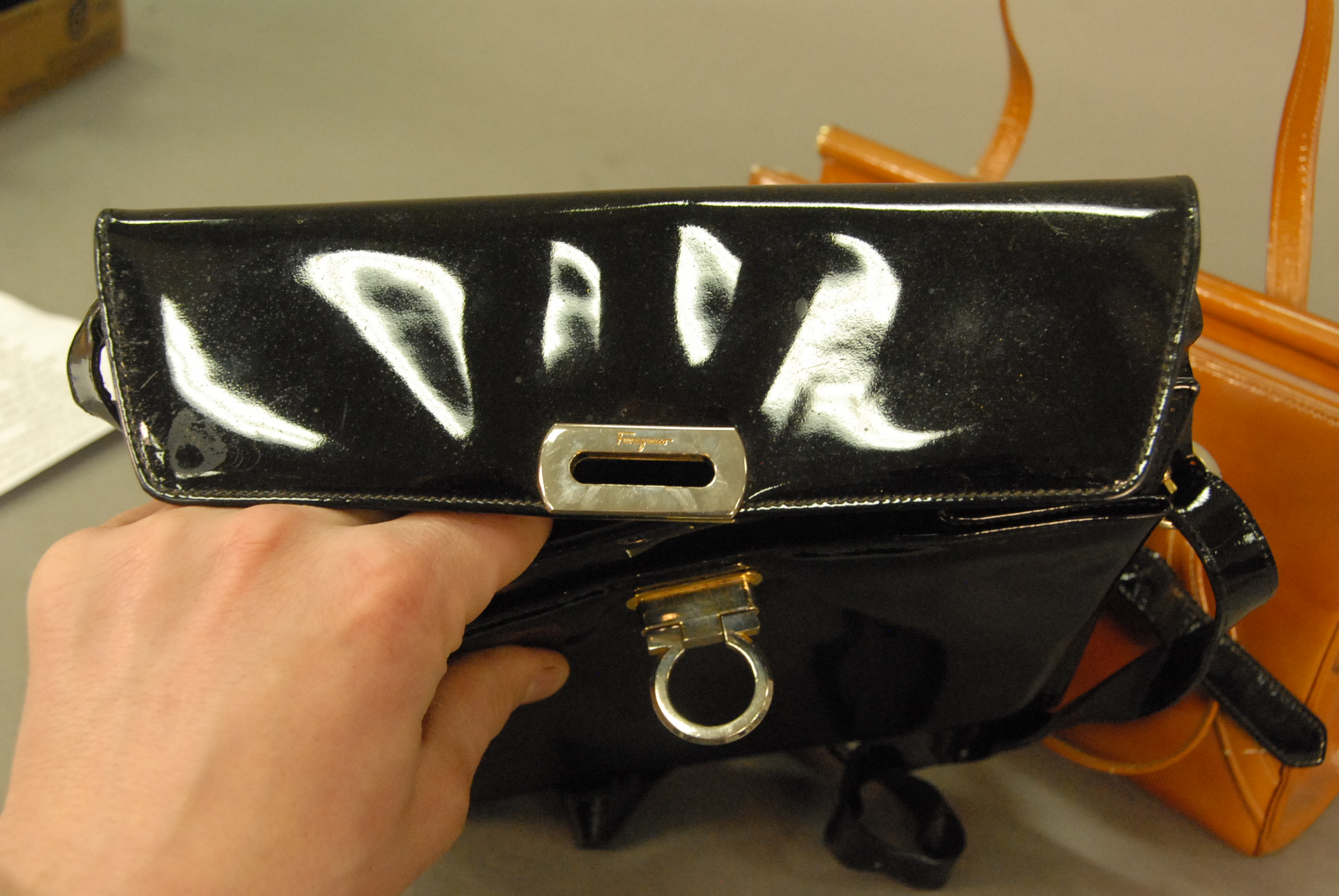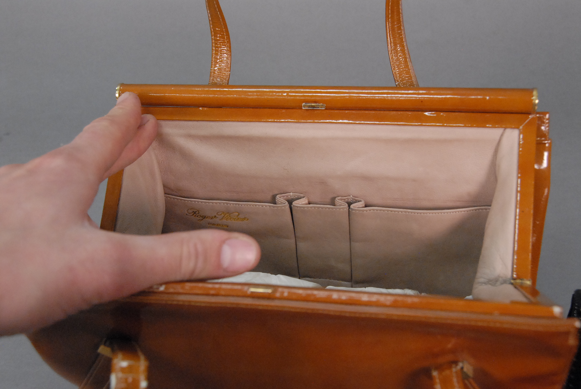 Two vintage purses black Roger Vivier and black Salvatore Ferragamo.