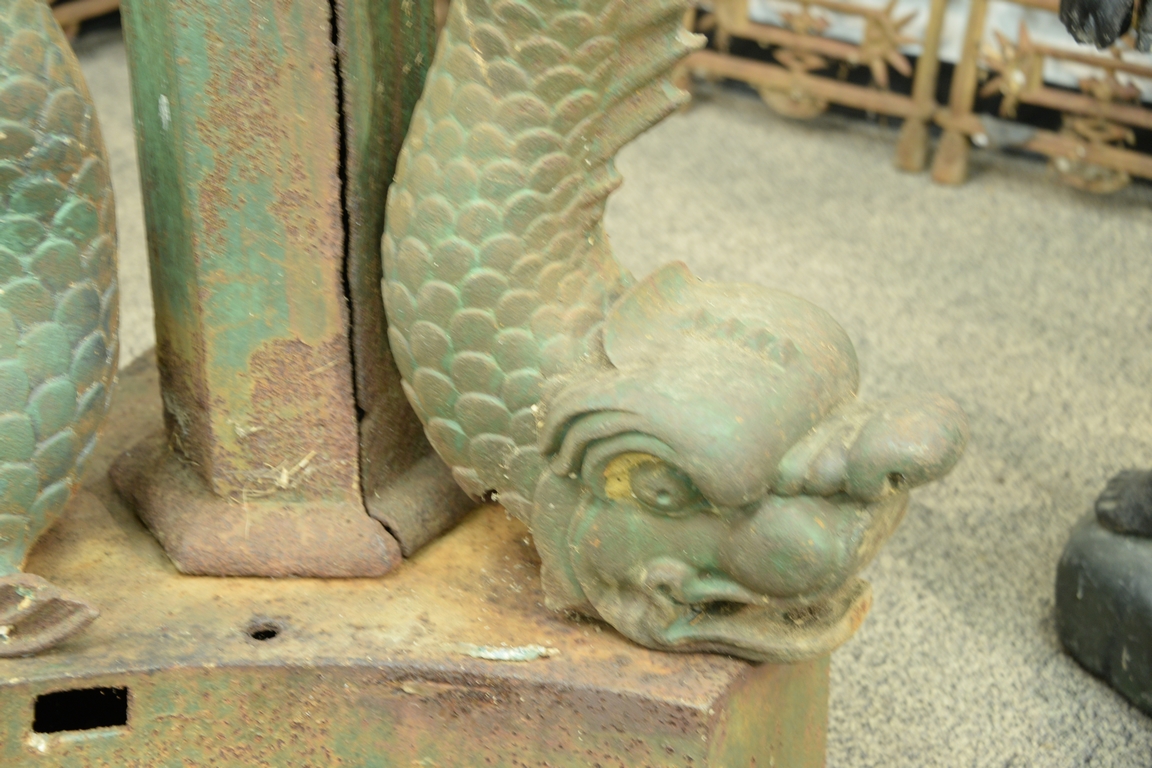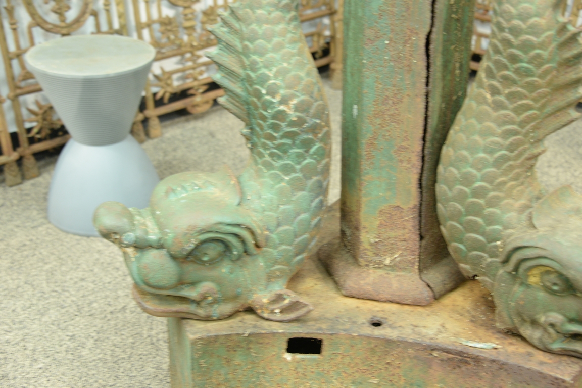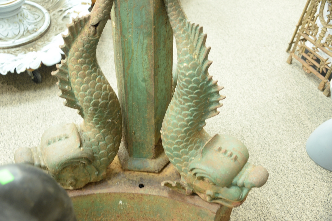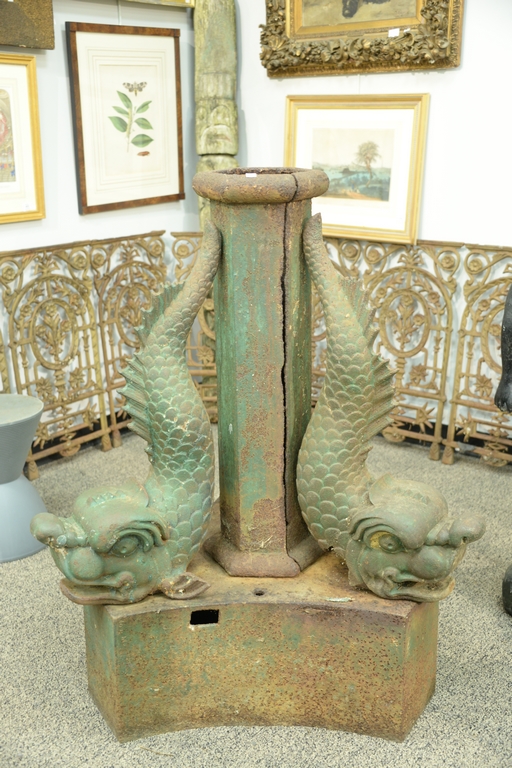 Victorian iron base with three large dolphin. dolphin ht. 30in., total ht. 45in. Provenance: Collection of Anne Jones Willis and the late John Ralph Willis, New Jersey