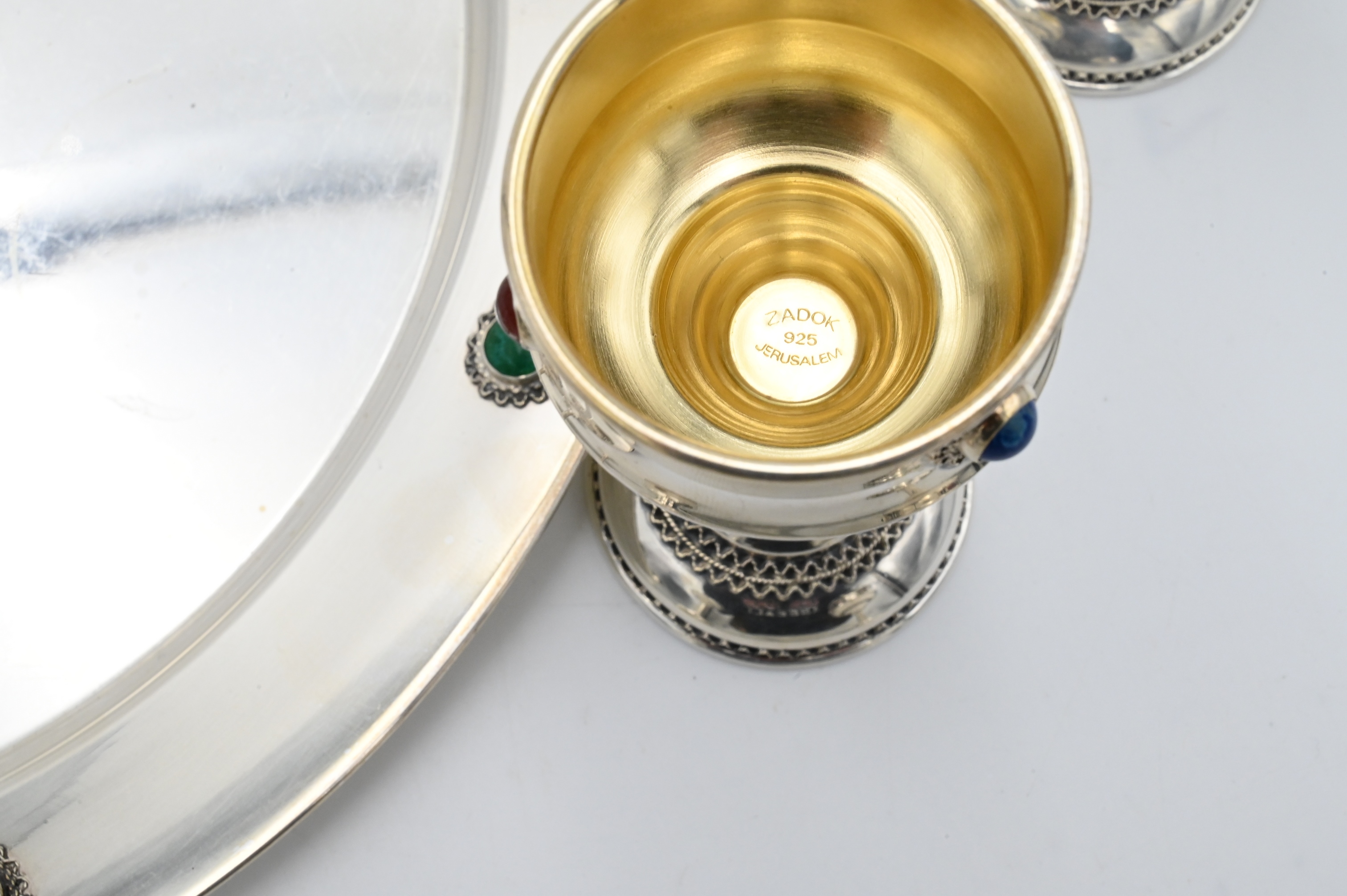 10 Piece Israeli Zakok Sterling Silver Kiddush Set