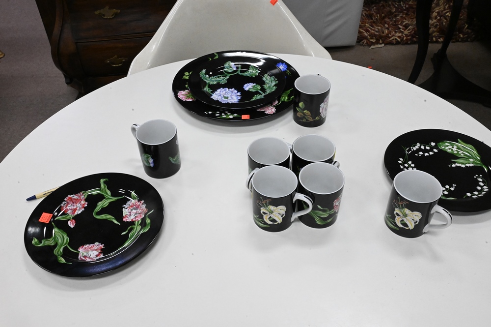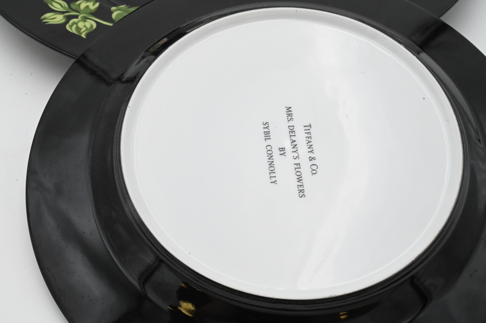 Lot 108: 14 Piece Tiffany & Company Mrs. Delany’s Flowers Porcelain Dessert Set, to include two platters, four plates, and eight cups.