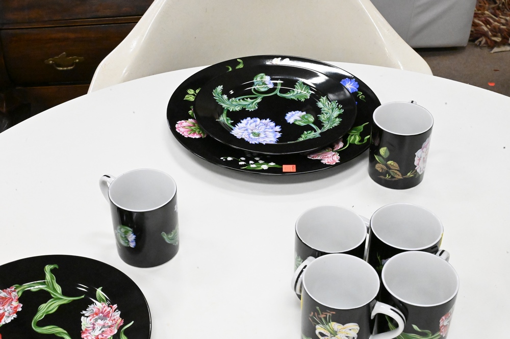 14 Piece Tiffany & Company Mrs. Delany’s Flowers Porcelain Dessert Set, to include two platters, four plates, and eight cups.