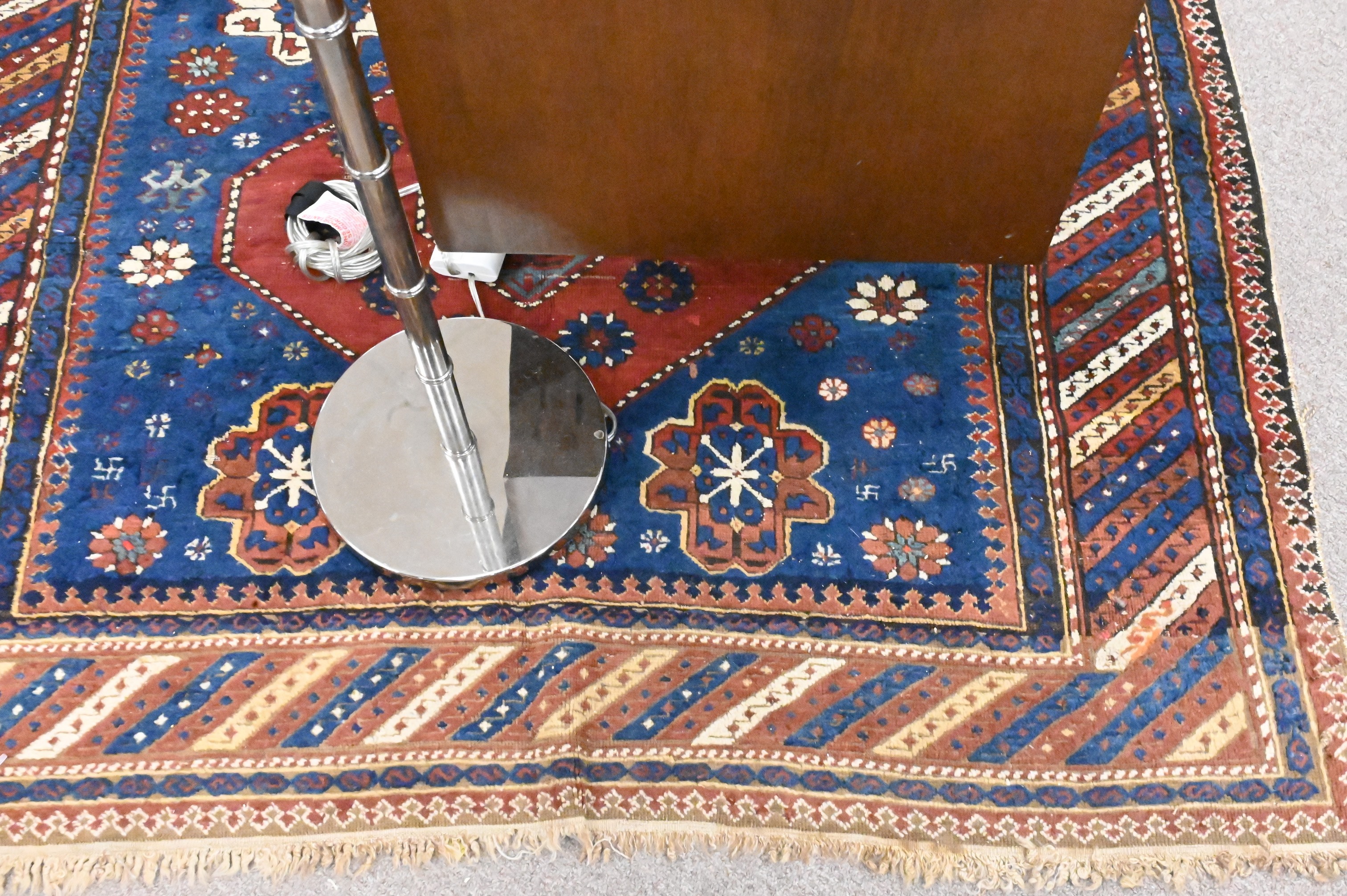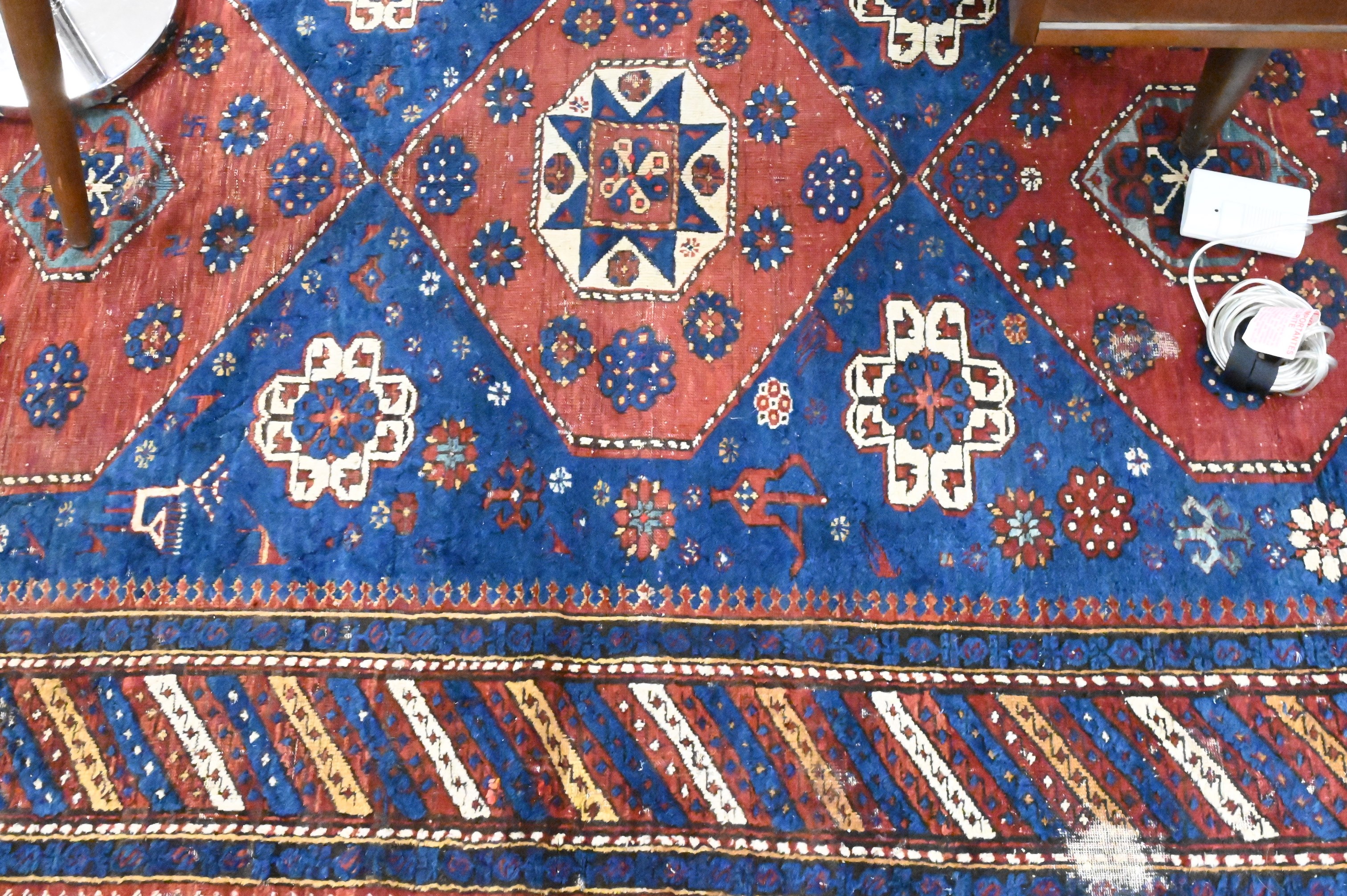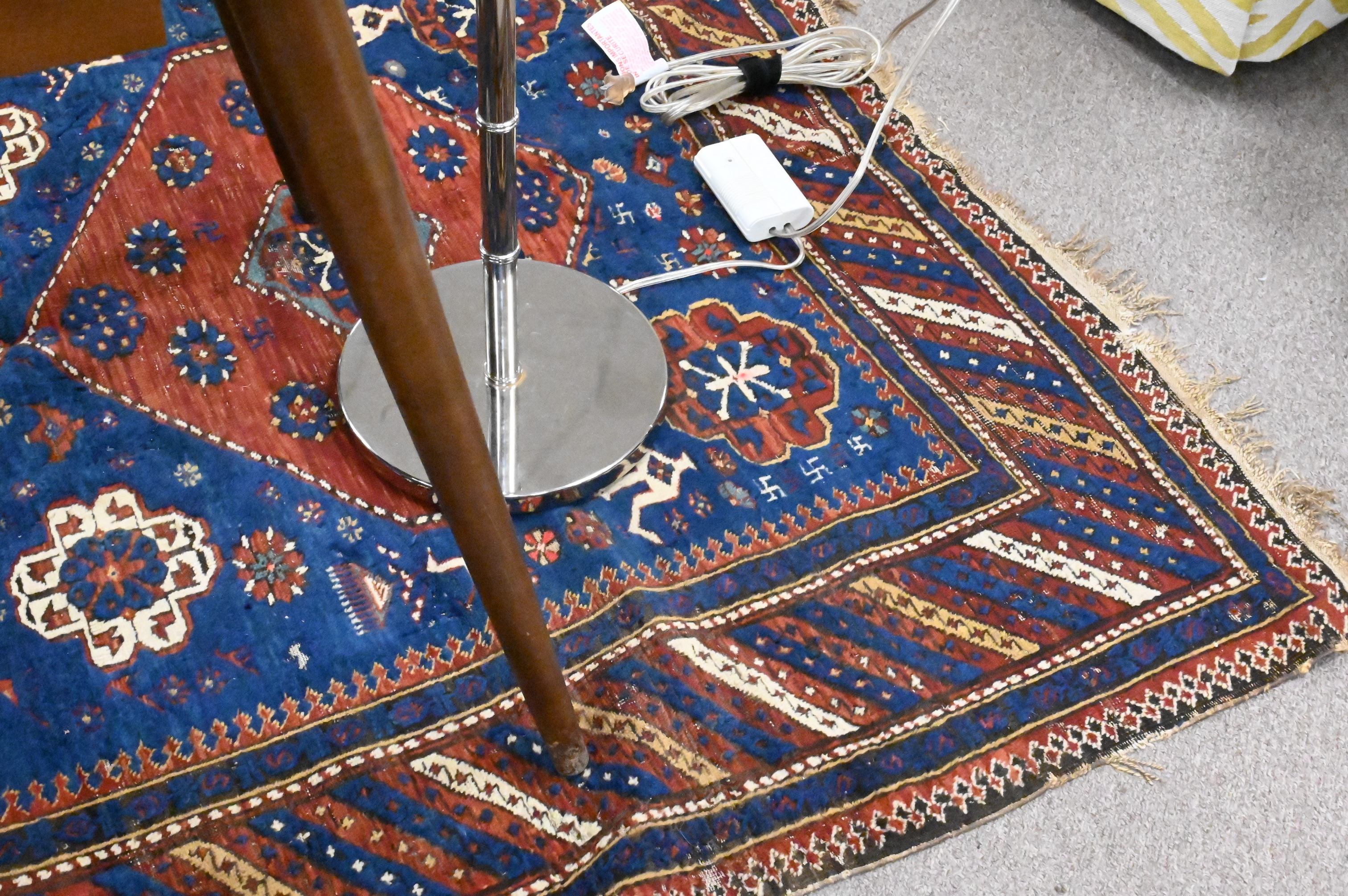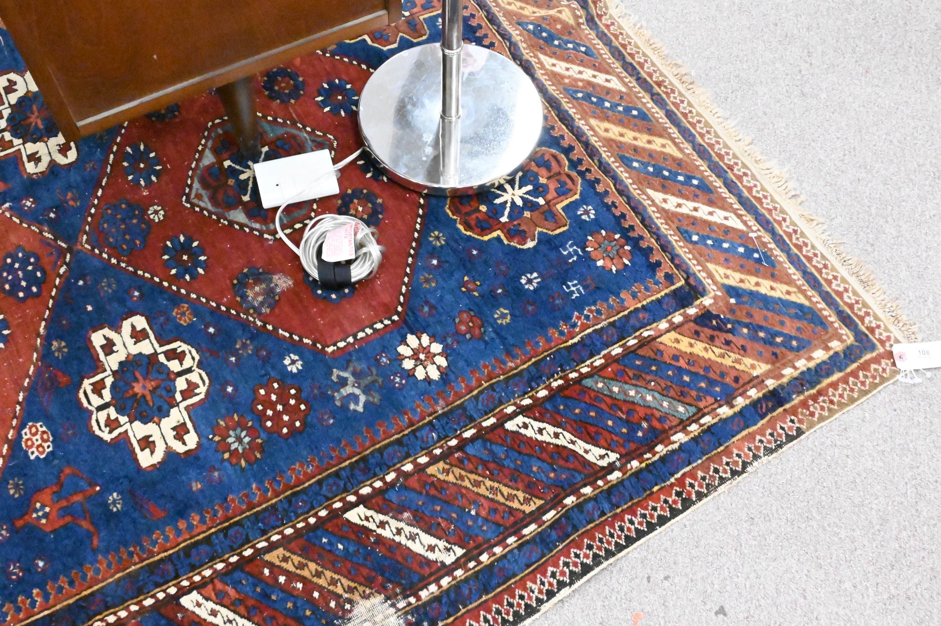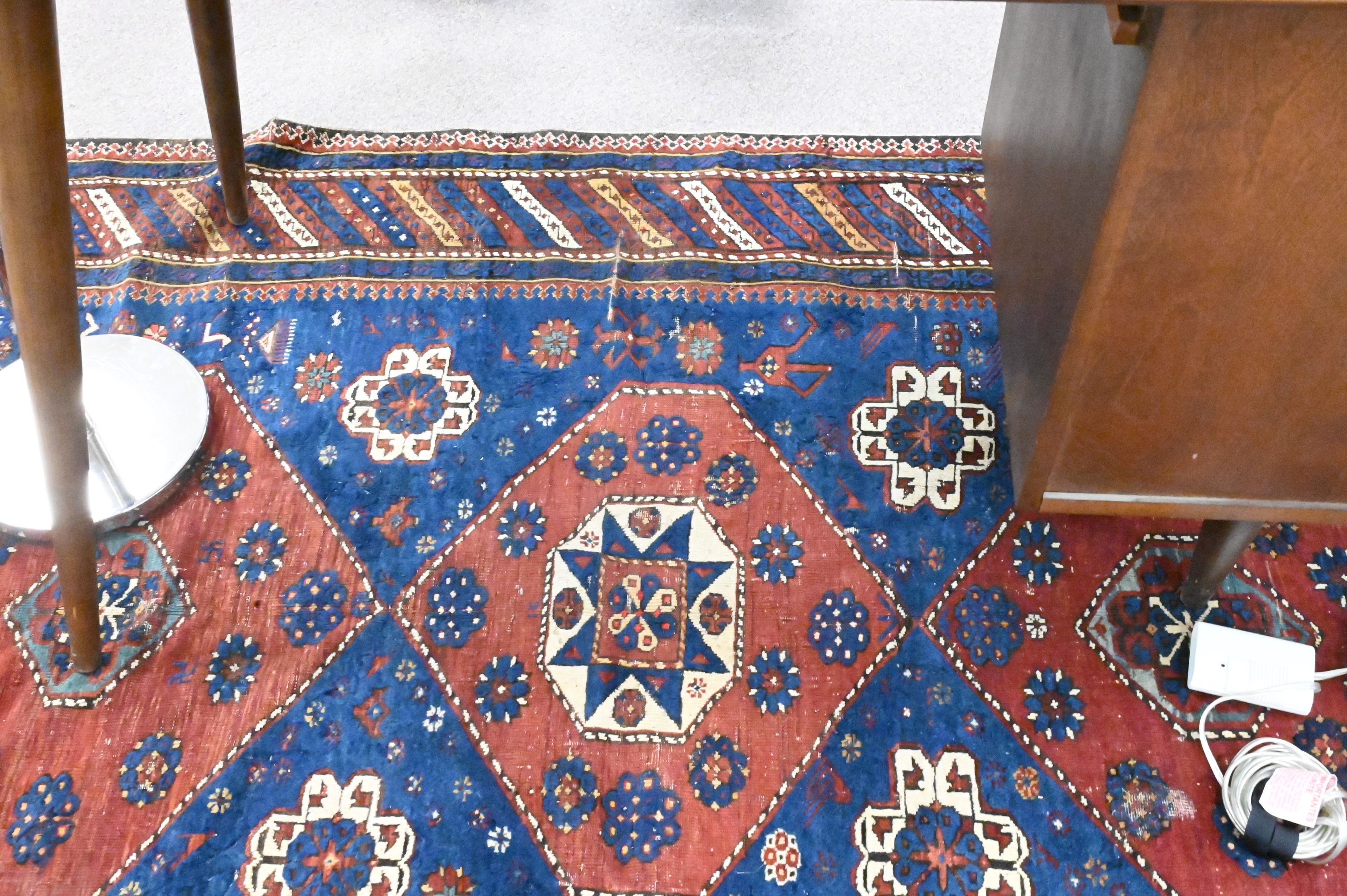 Caucasian Oriental Throw Rug, having a hole at one end, 4′ 3″ x 7′ 3″.