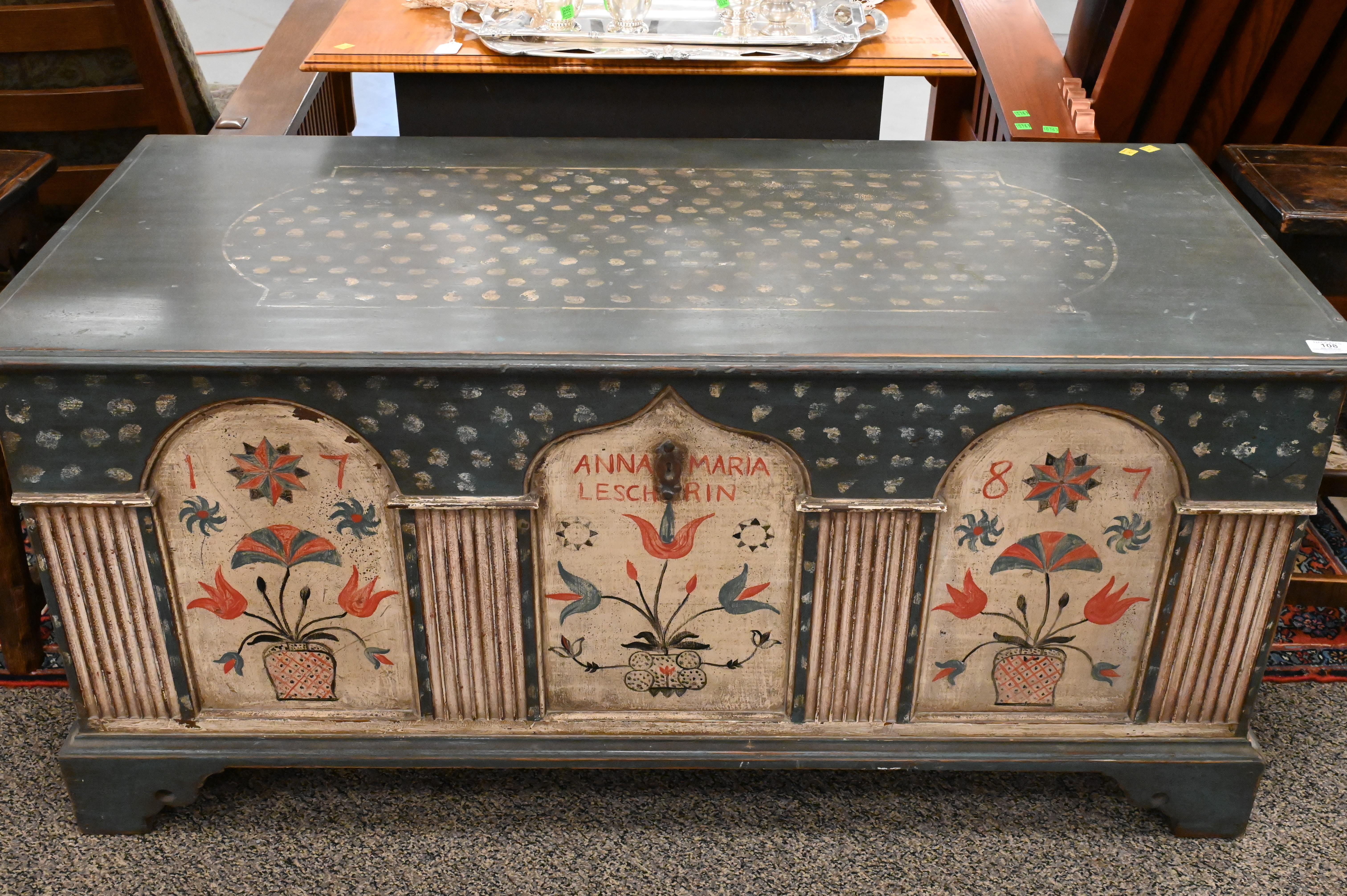 Pennsylvania Dutch Style Design, inscribed “Anna Maria Leschrin 1787″