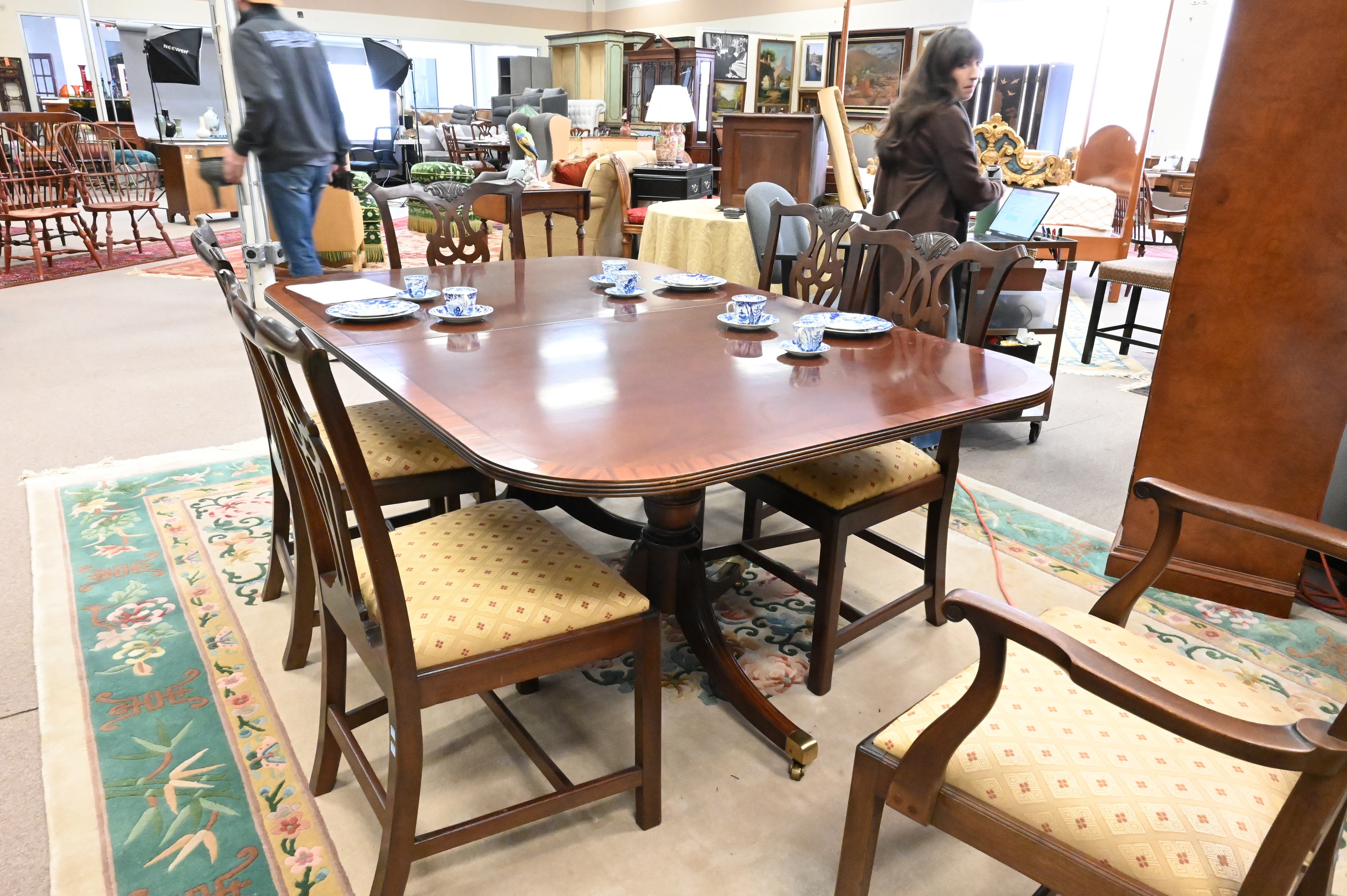 Lot 108: Double Pedestal Inlaid Mahogany Dining Table