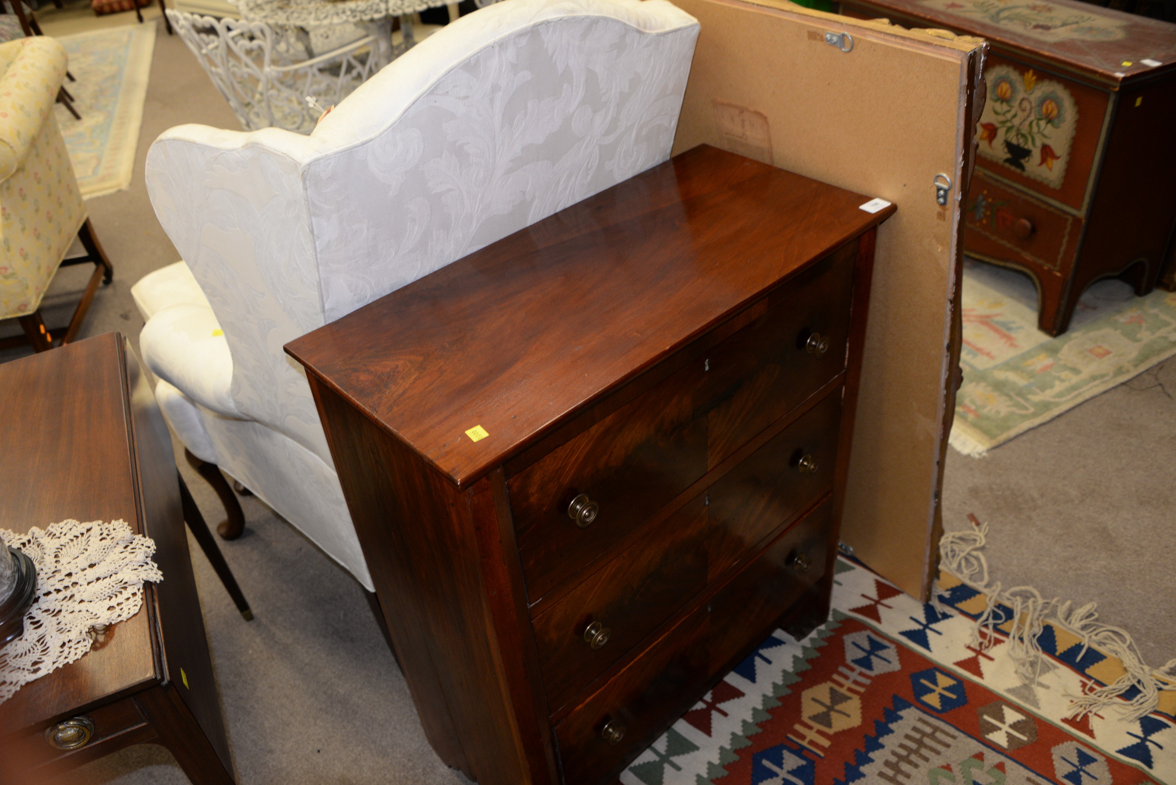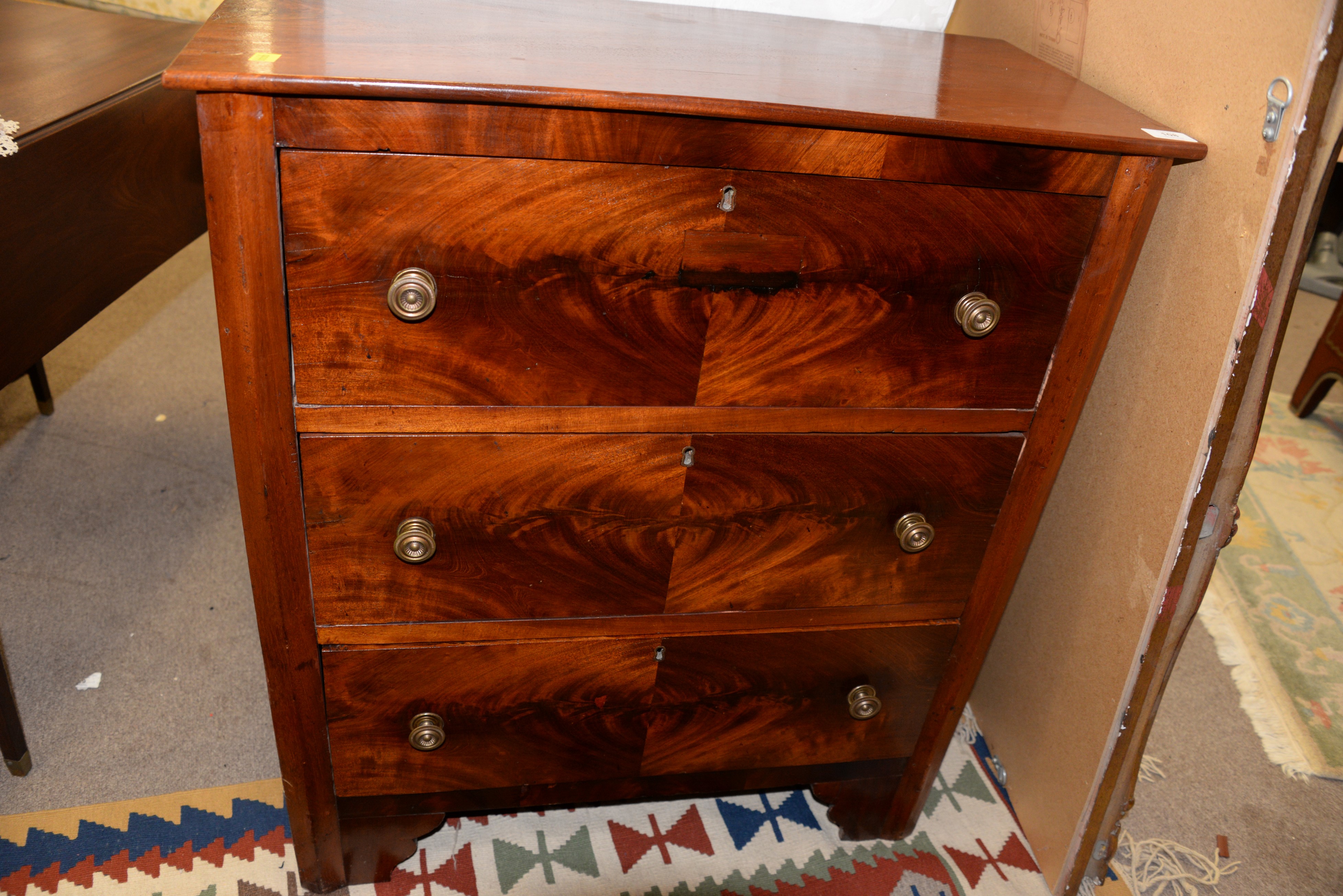 Mahogany three drawer chest. ht. 33 1/2 in. wd. 29 1/2 in. dp. 14 in.