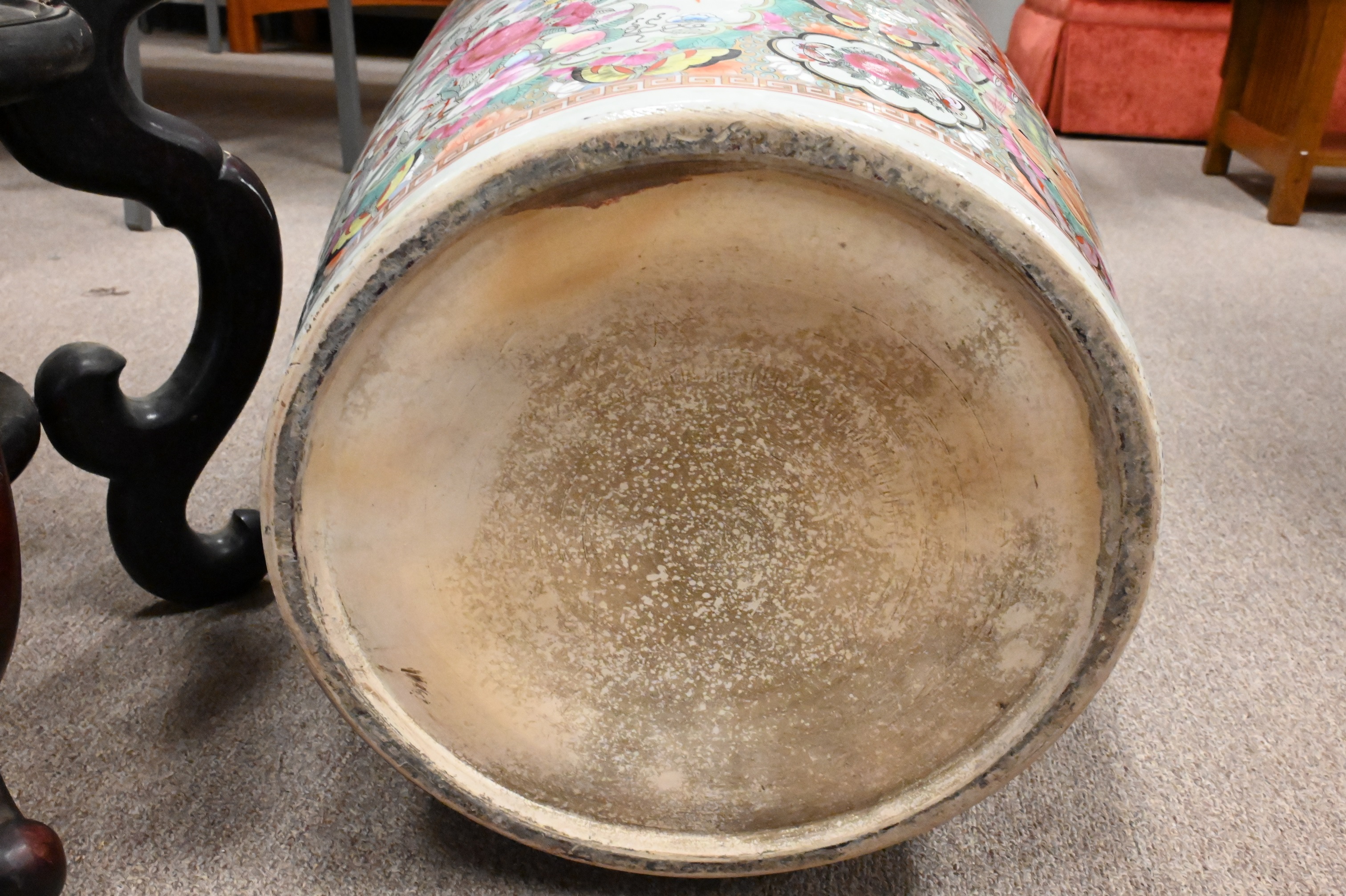 Lot 108: Pair of Palace Size Rose Famille Vases on Wood Stands