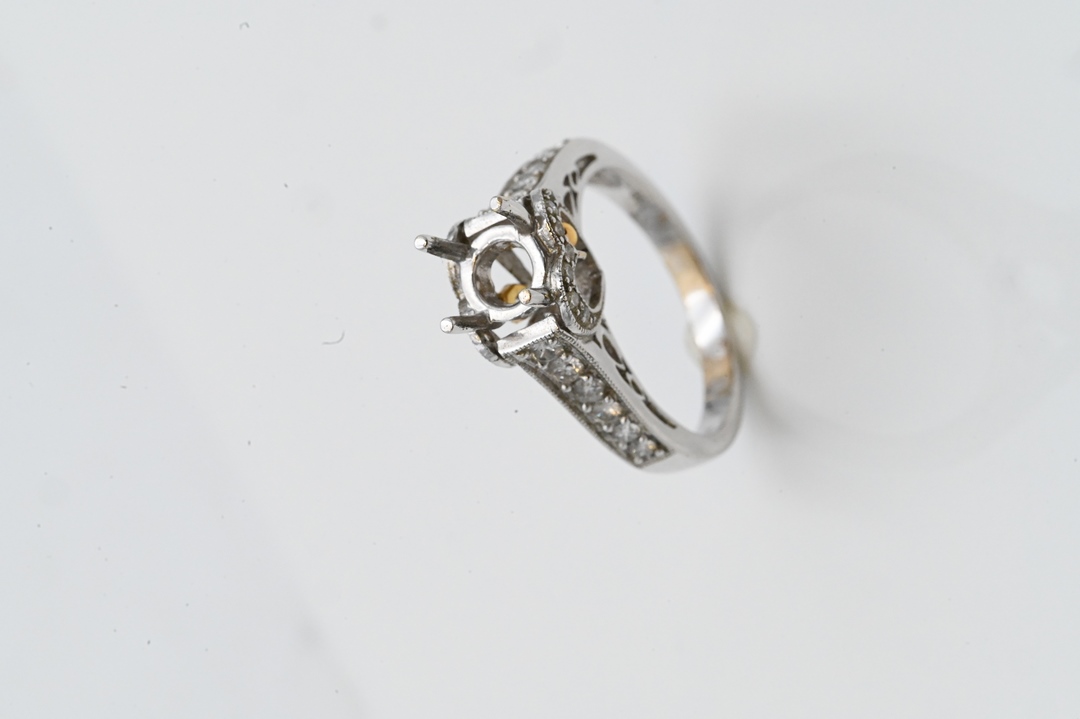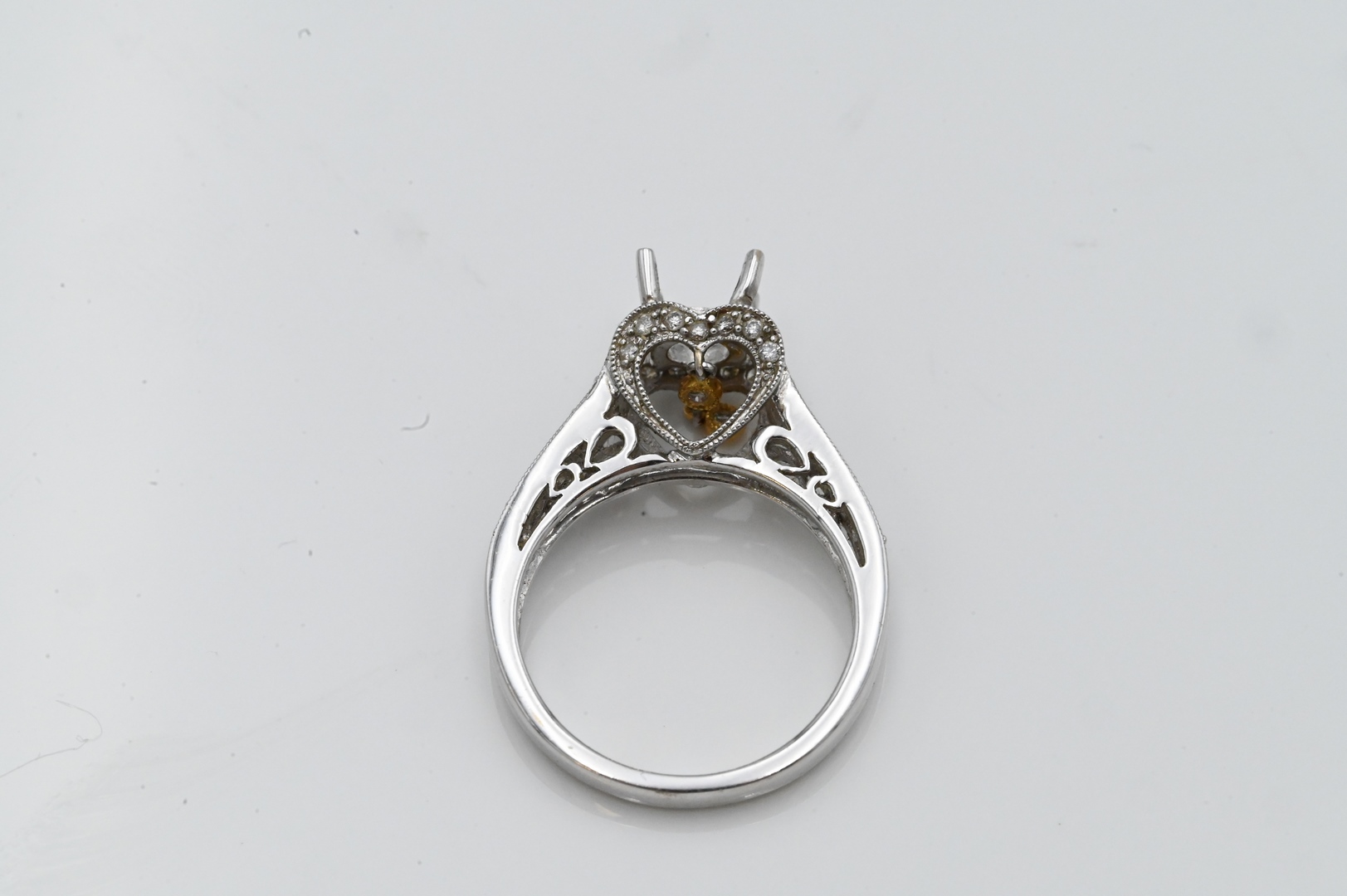 no center diamond, having openwork heart on two sides, along with small drop and line of diamonds on either side