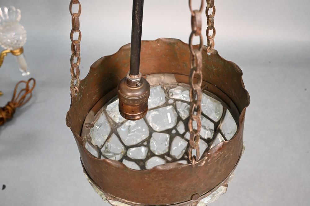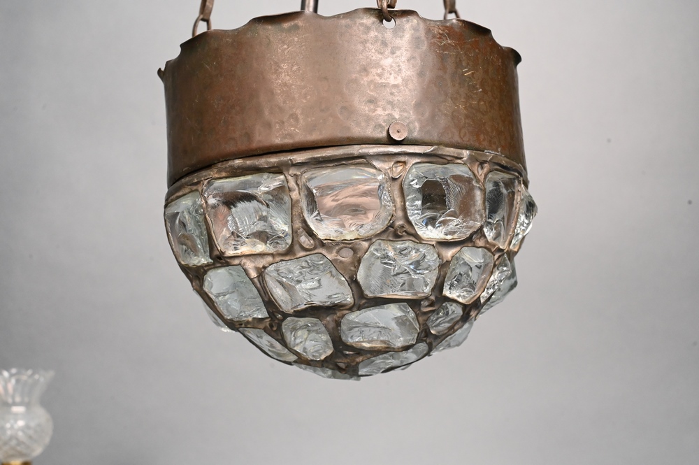 Austrian Hanging Lamp, having chunk jeweled clear glass shade, height 22 inches.