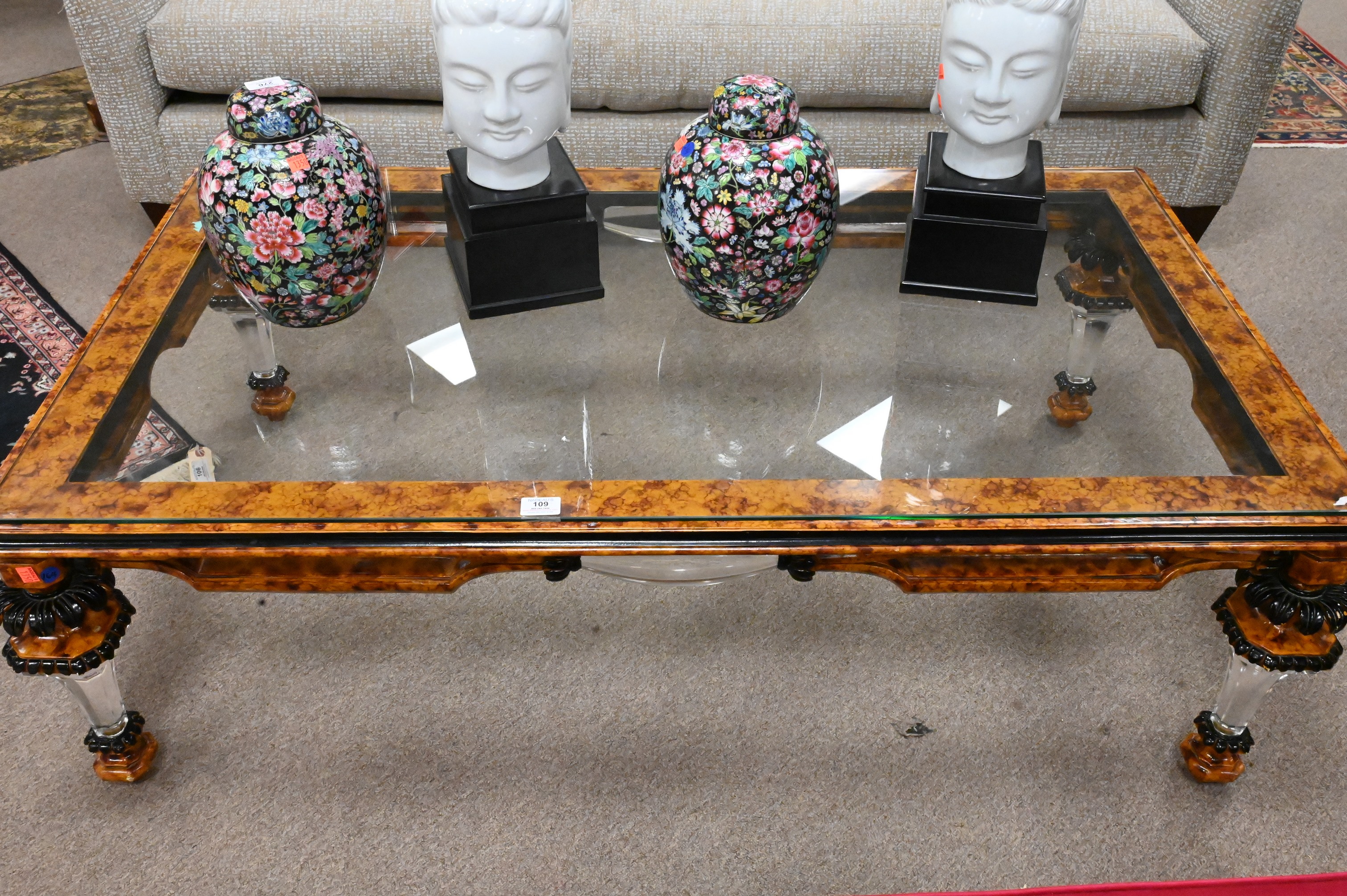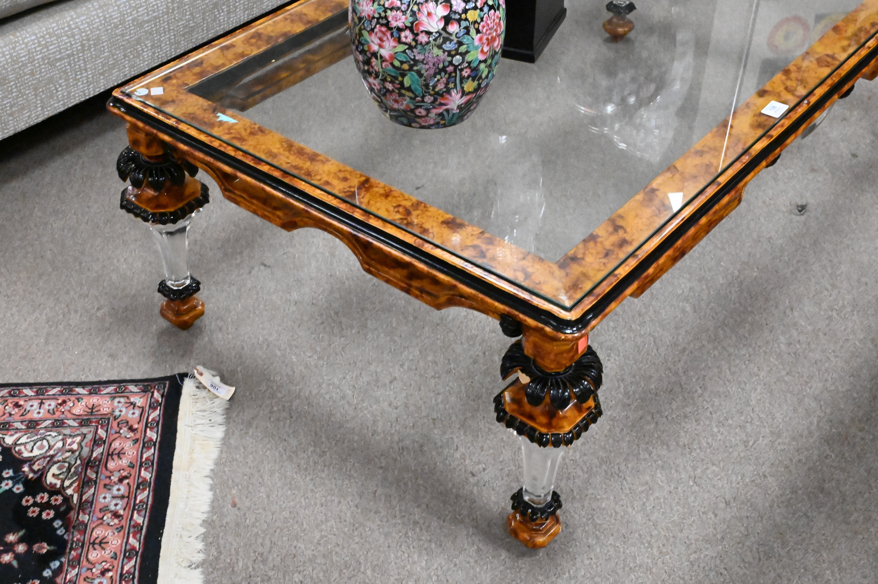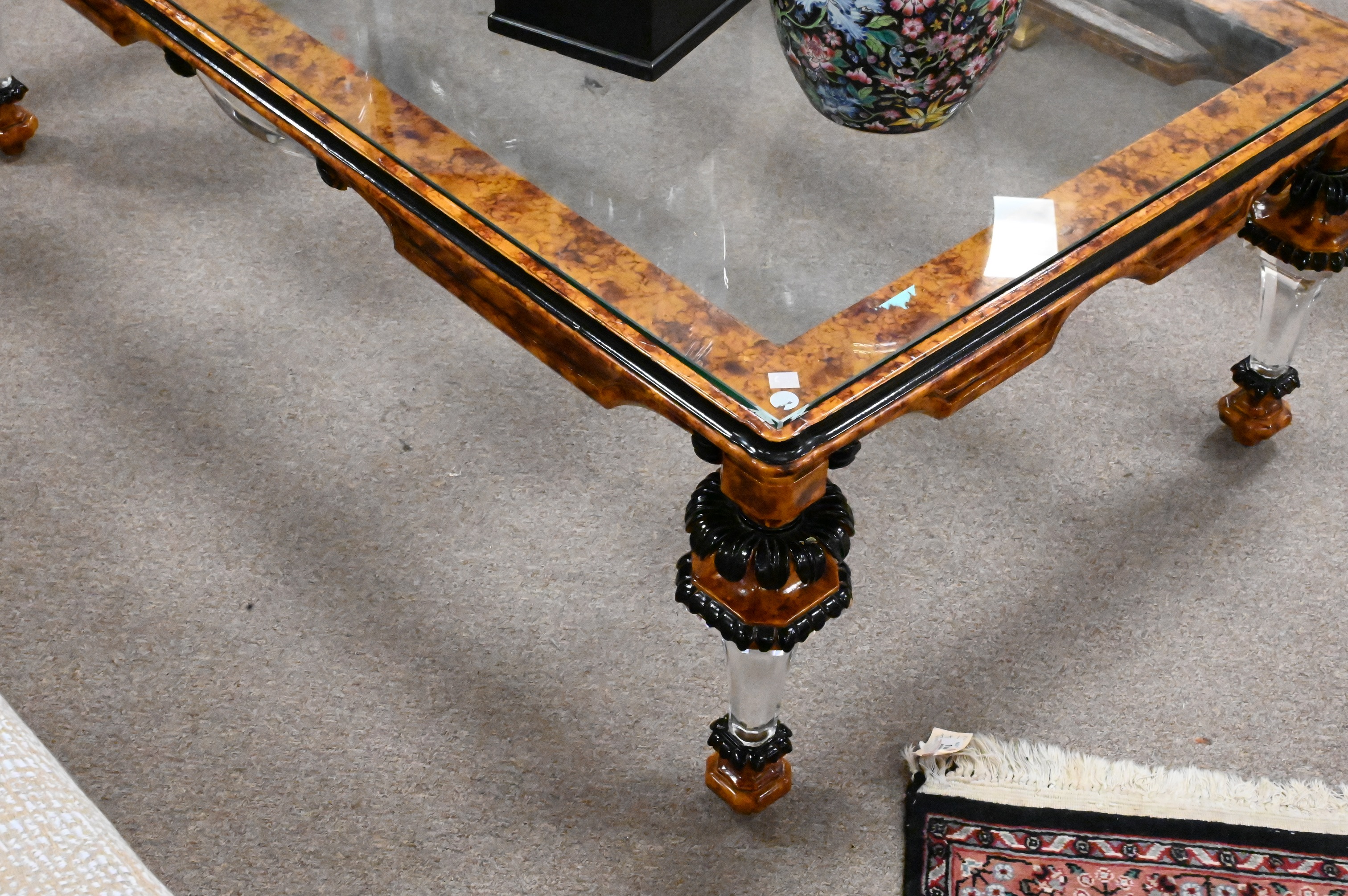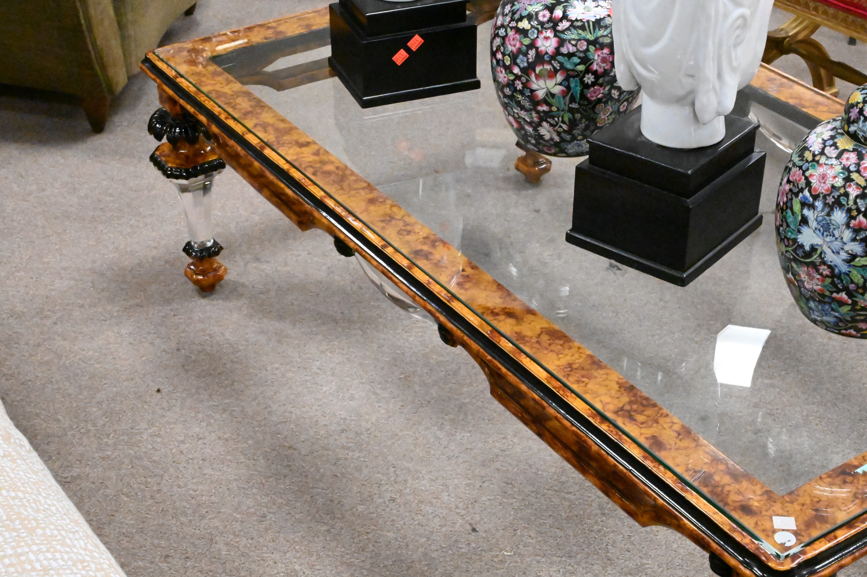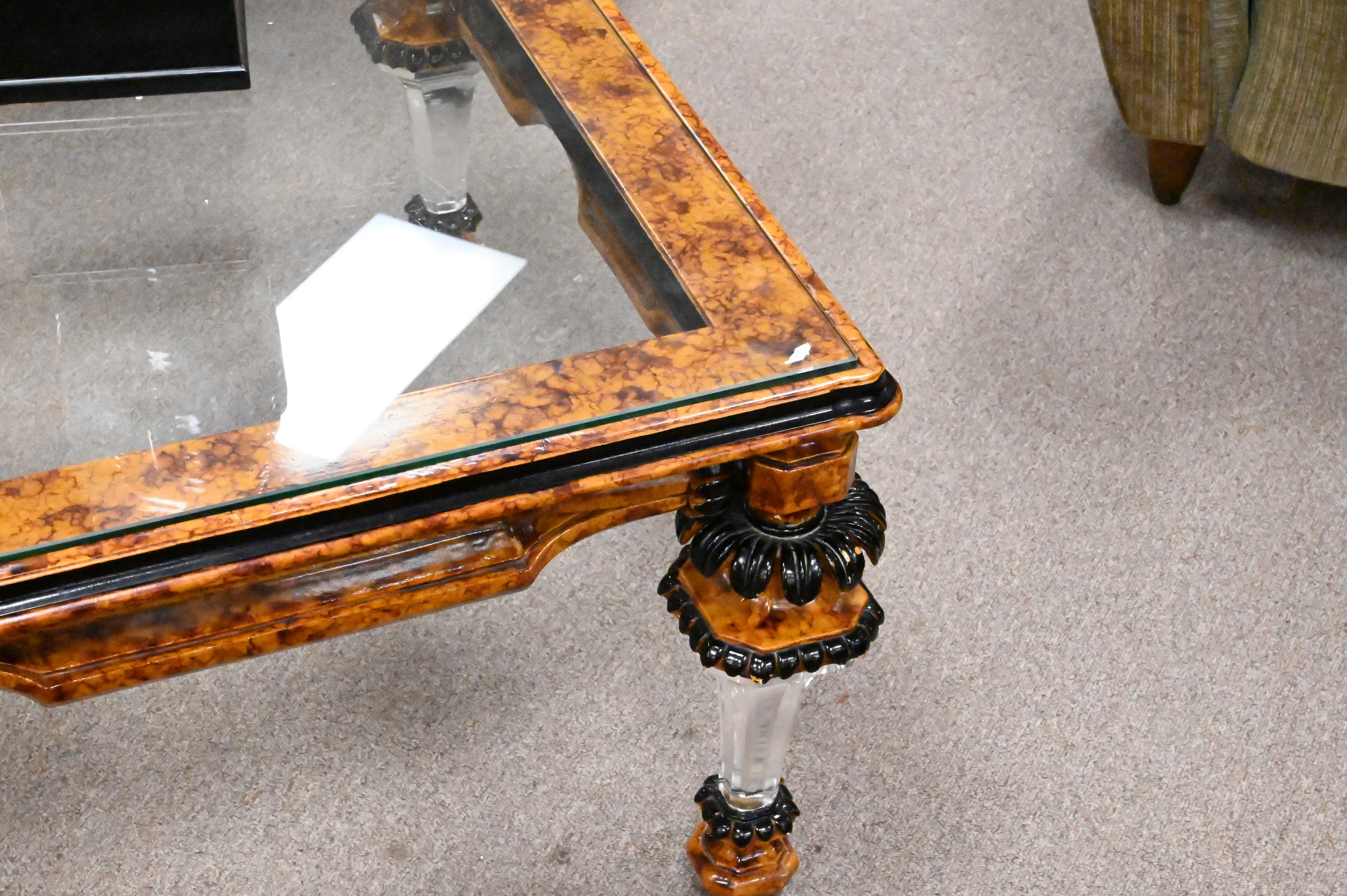 Lot 109: Baroque Style Faux Tortoiseshell Parcel-Ebonized and Glass Coffee Table