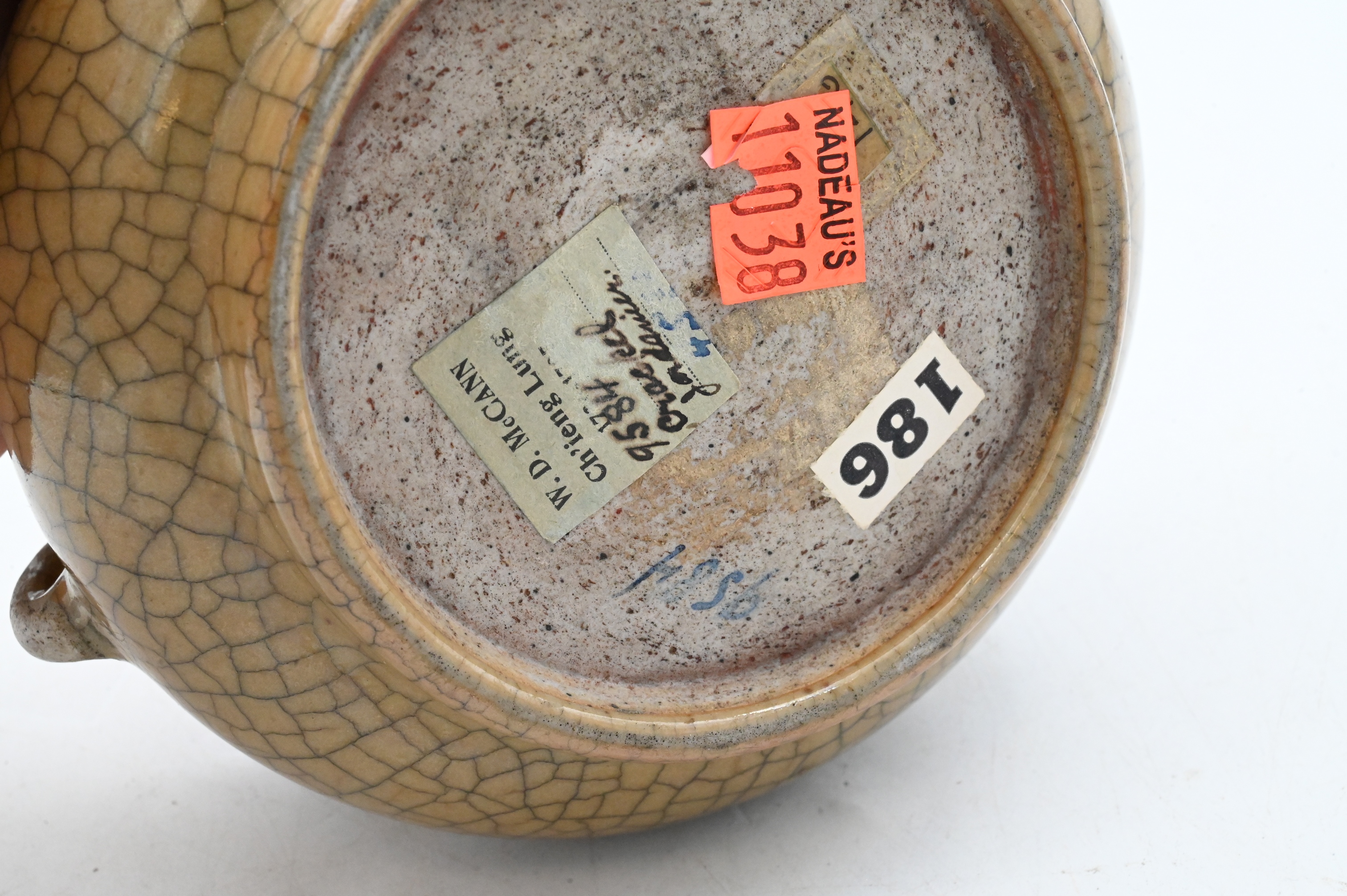 having unglazed ring handles, W.D. McCann sale label marked Ch’ieng Lung collection numbers 186 and 146 written 9584