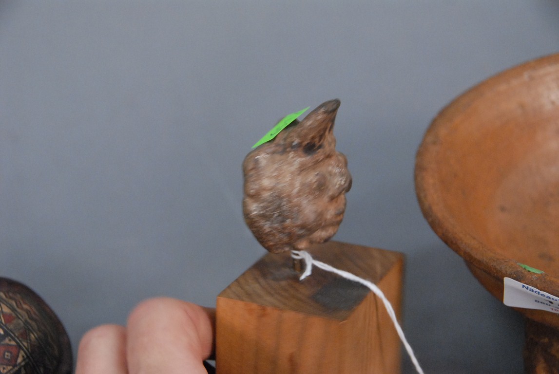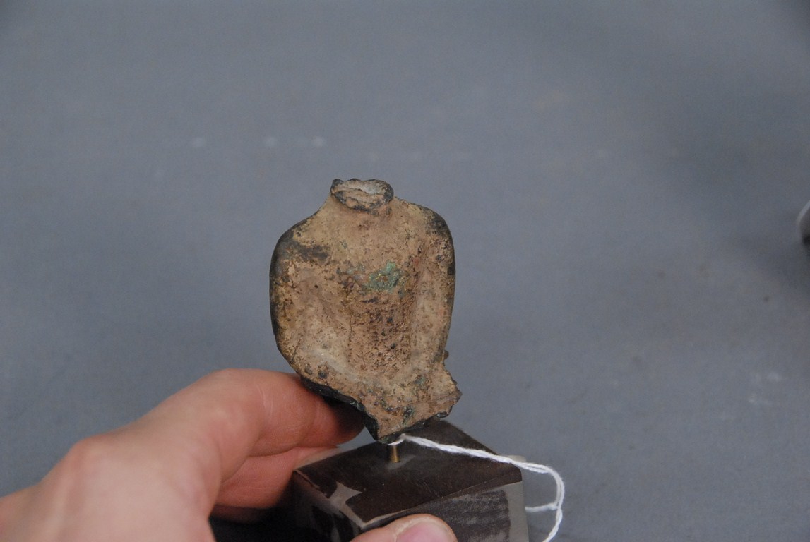 Lot 109: Early four piece lot bronze torso marked Siamese 17th-18th century, pottery foot bowl, head, and small jug. ht. 3in. dia. 8 1/2in…