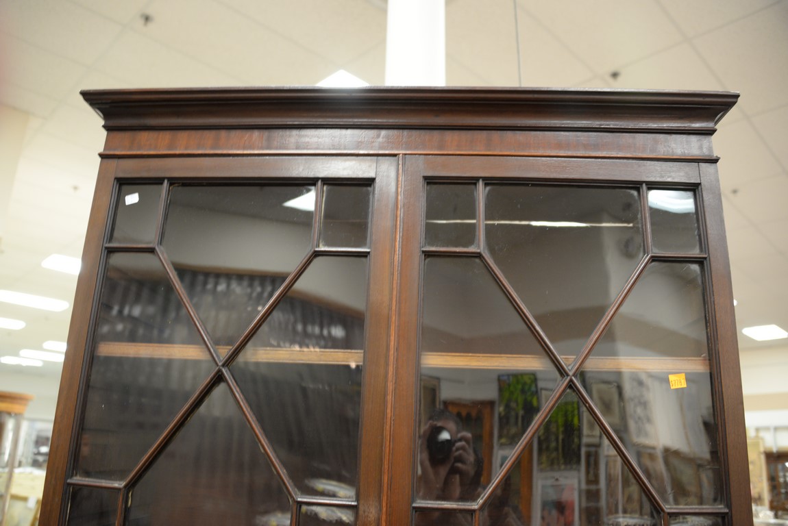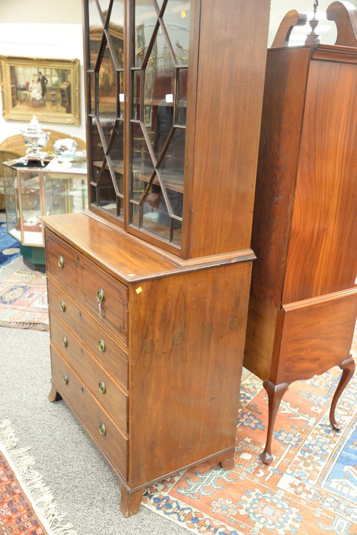 Lot 109: George III mahogany butler’s secretary desk in two parts, upper section with two glazed doors on lower section with pull out desk ov…