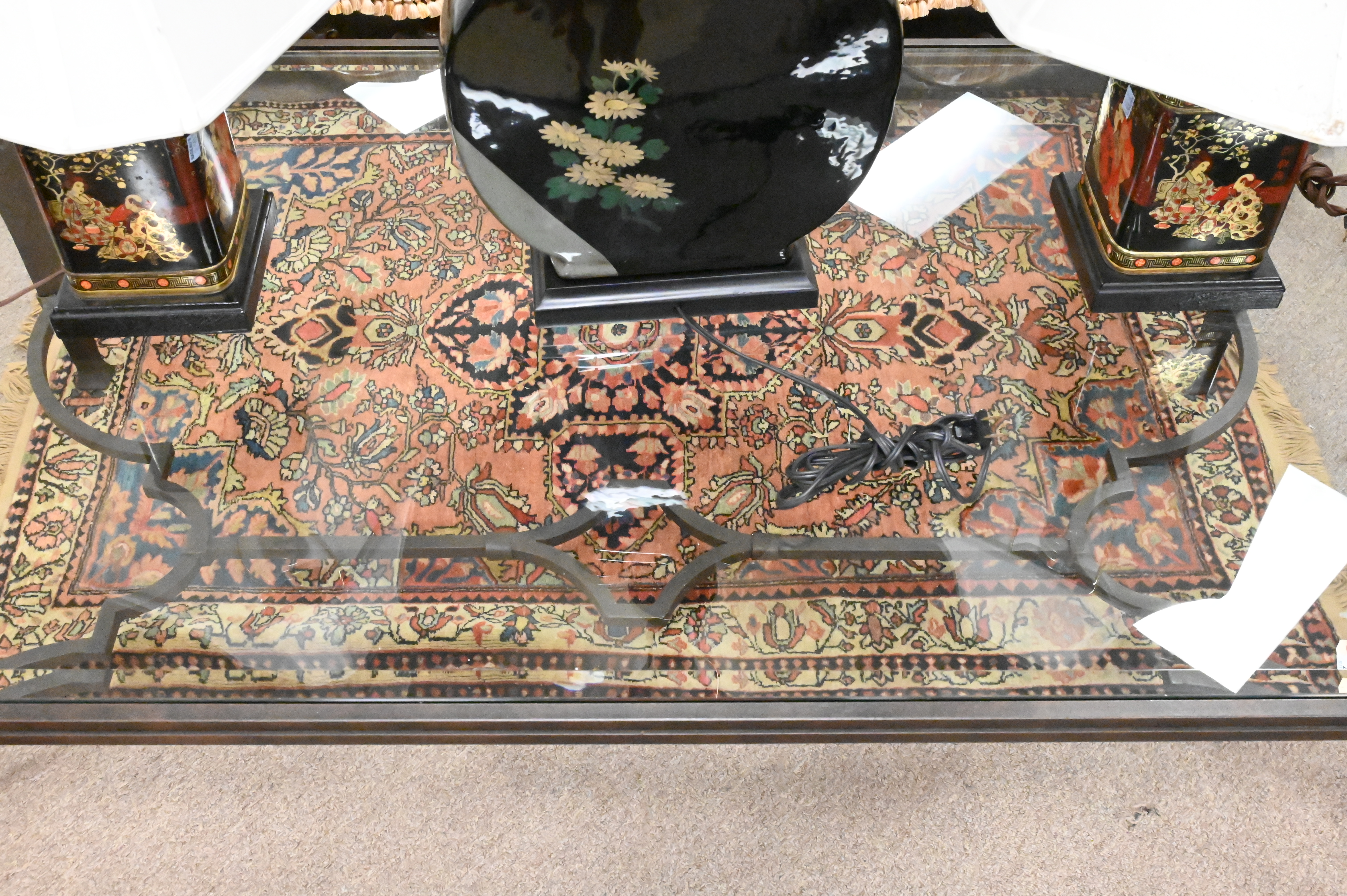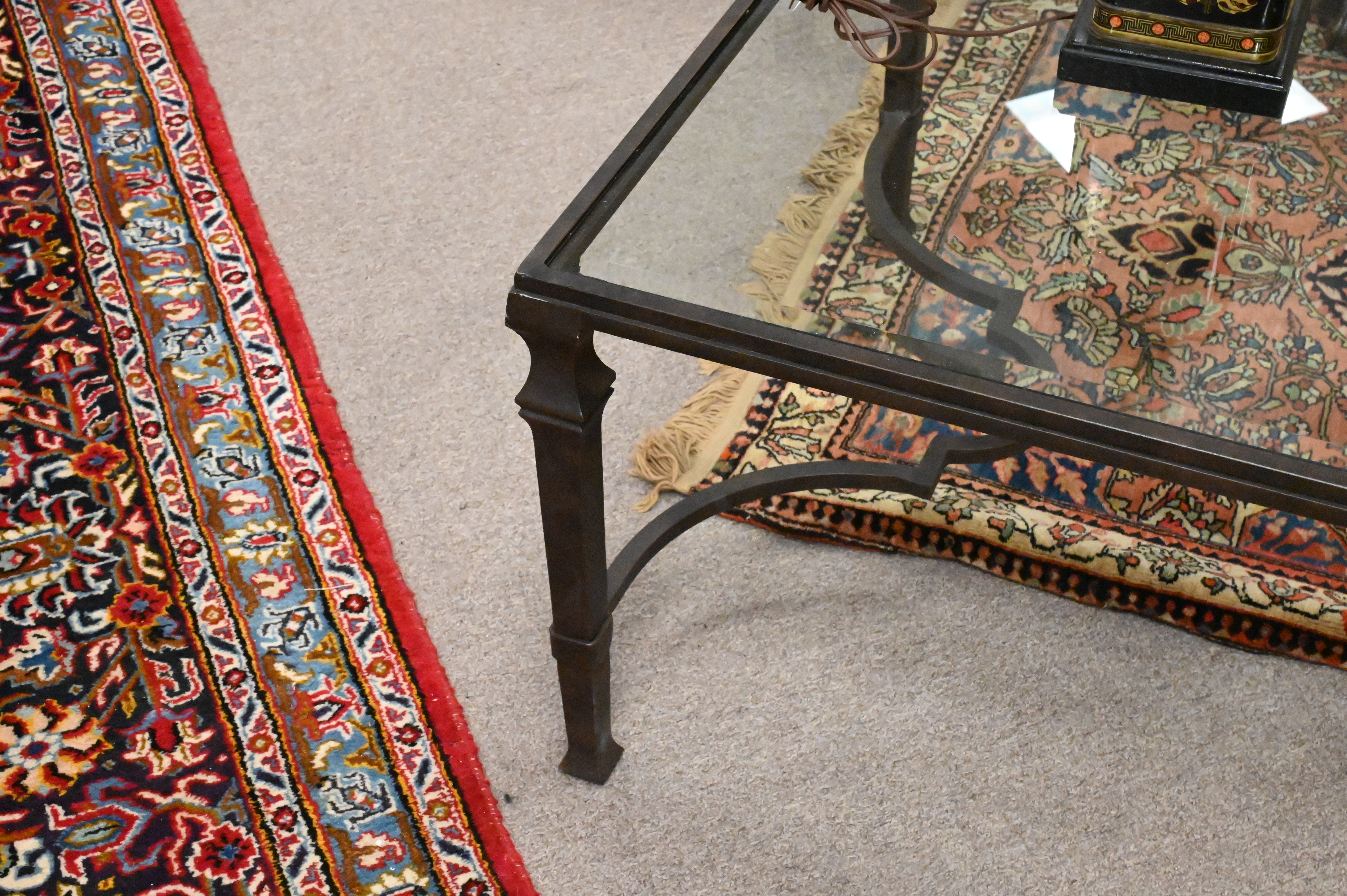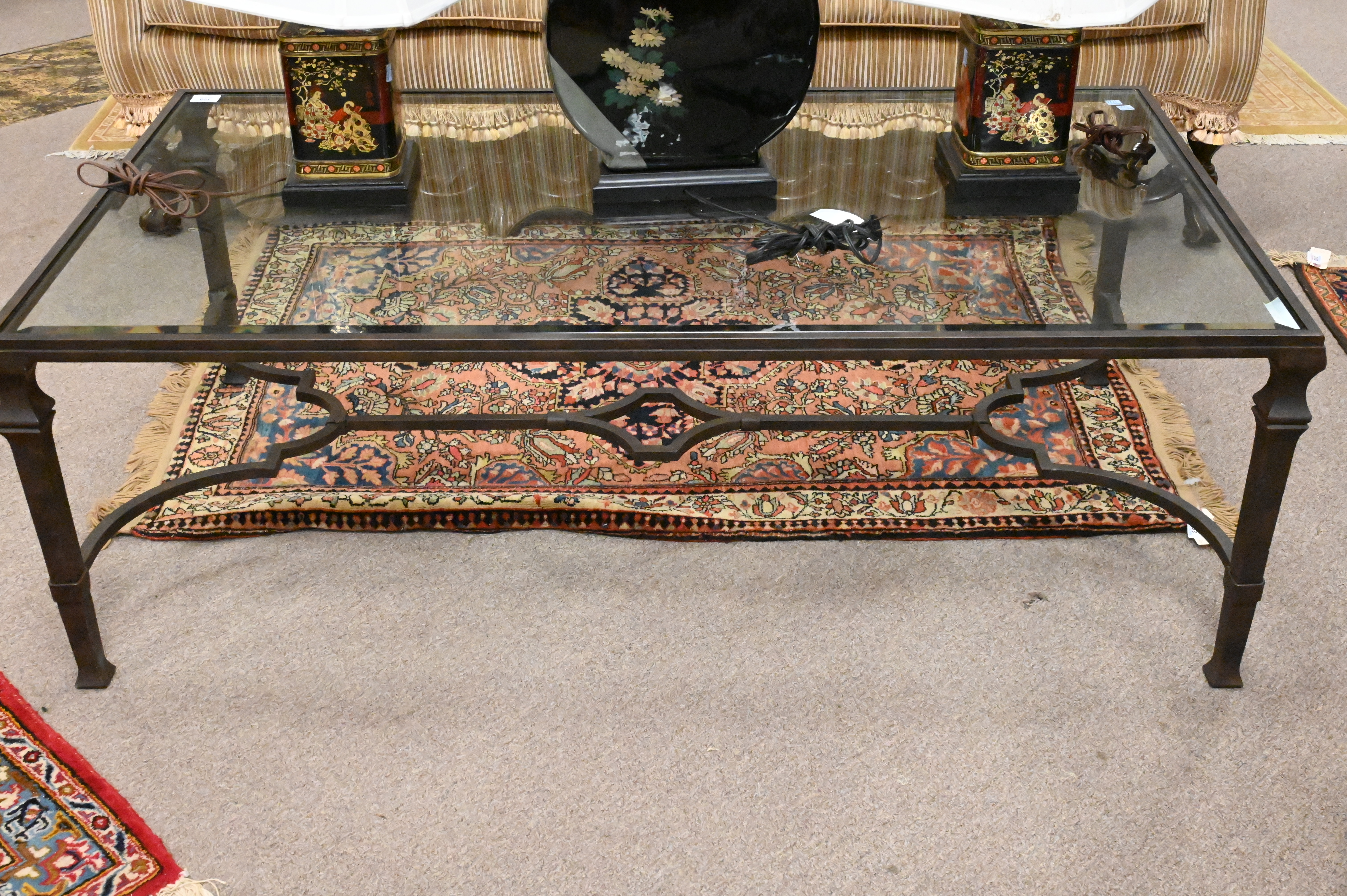 Iron and Glass Top Coffee Table, top 30″ x 54″