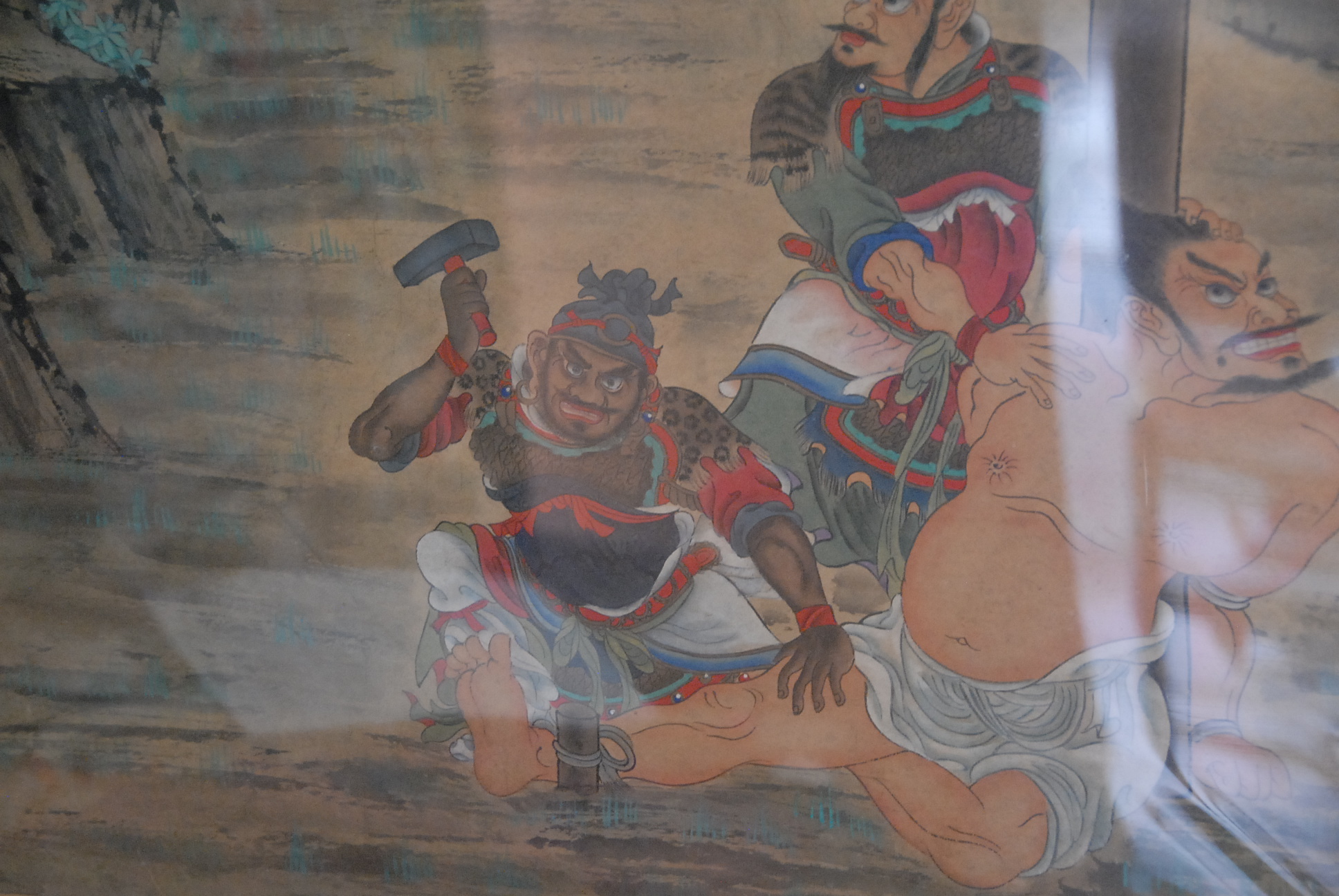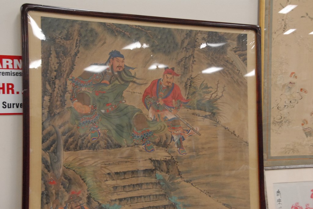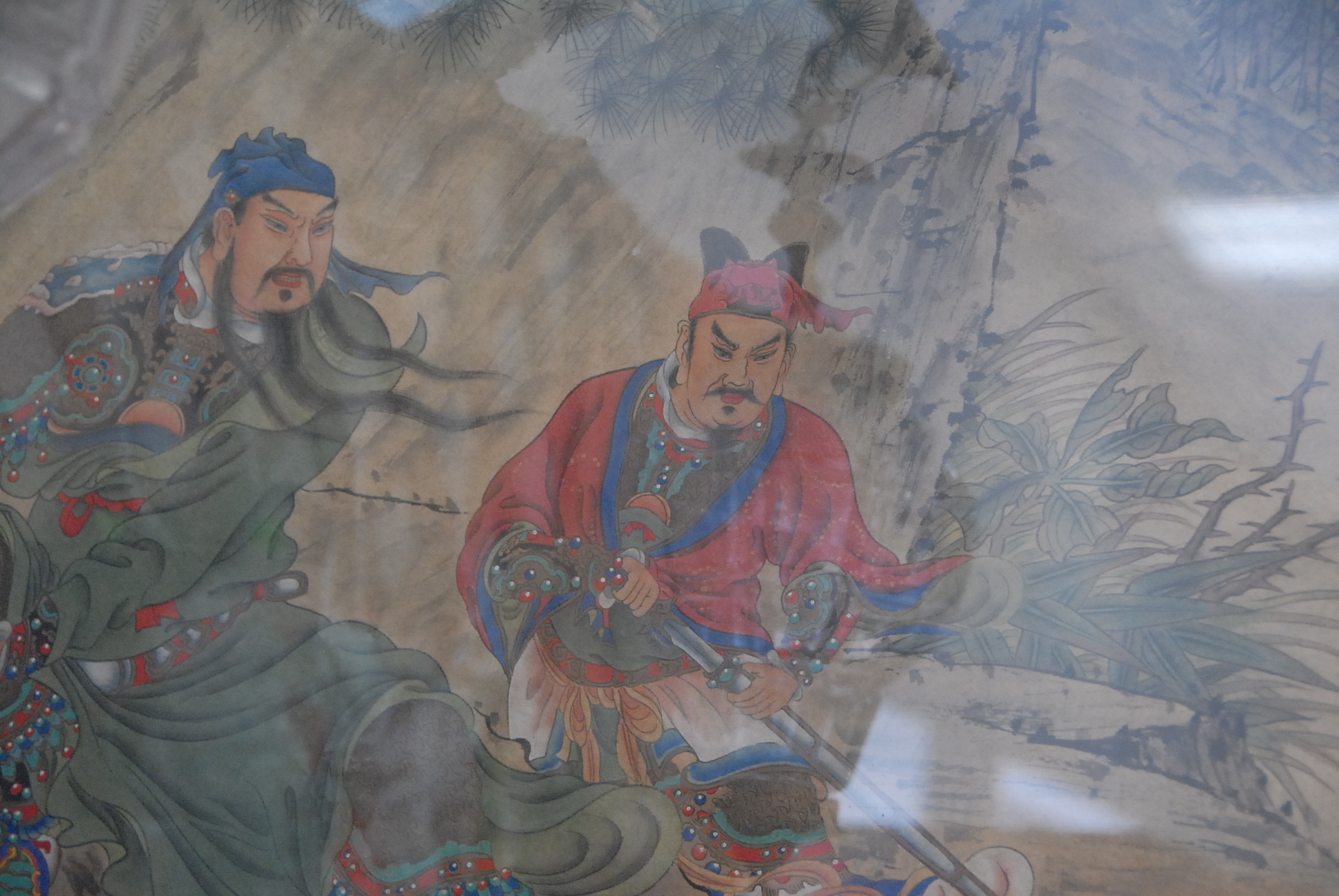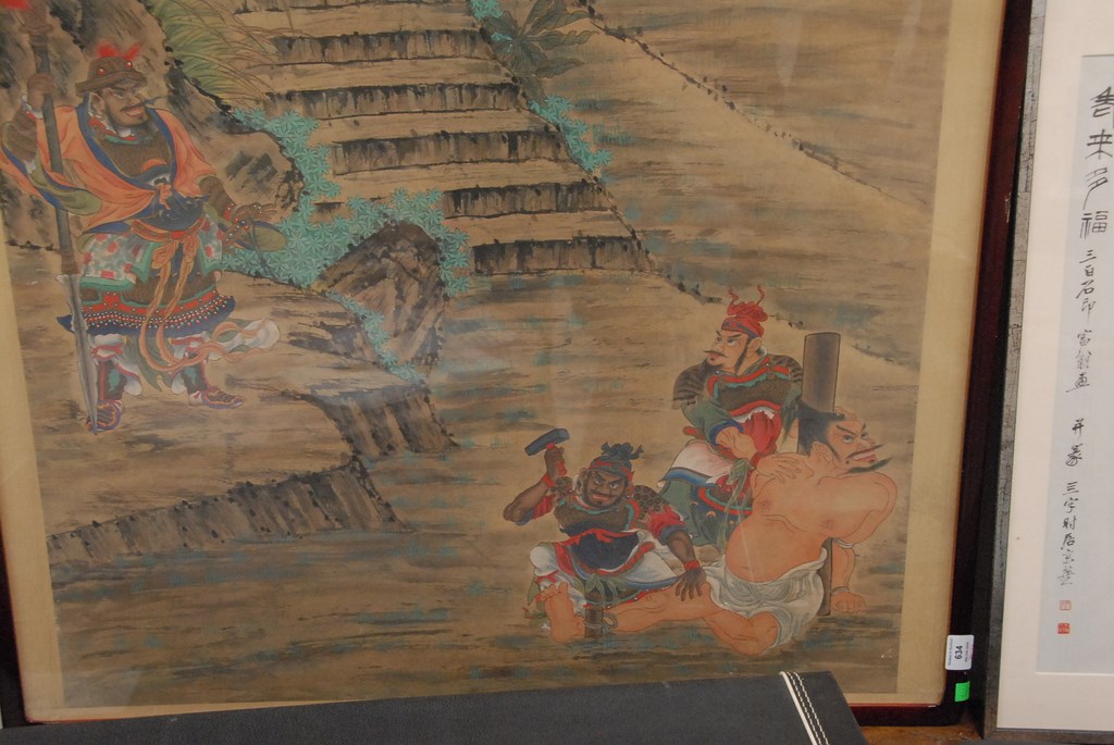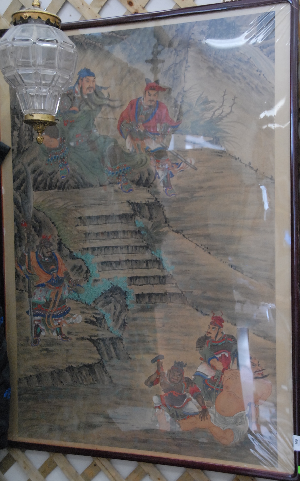 Large watercolor on paper of warrior scene. 49 x 33 sight size