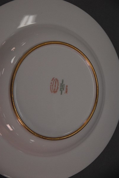 Set of twelve Spode soup bowls with raised gold borders trimmed in cobalt blue. dia. 9in.