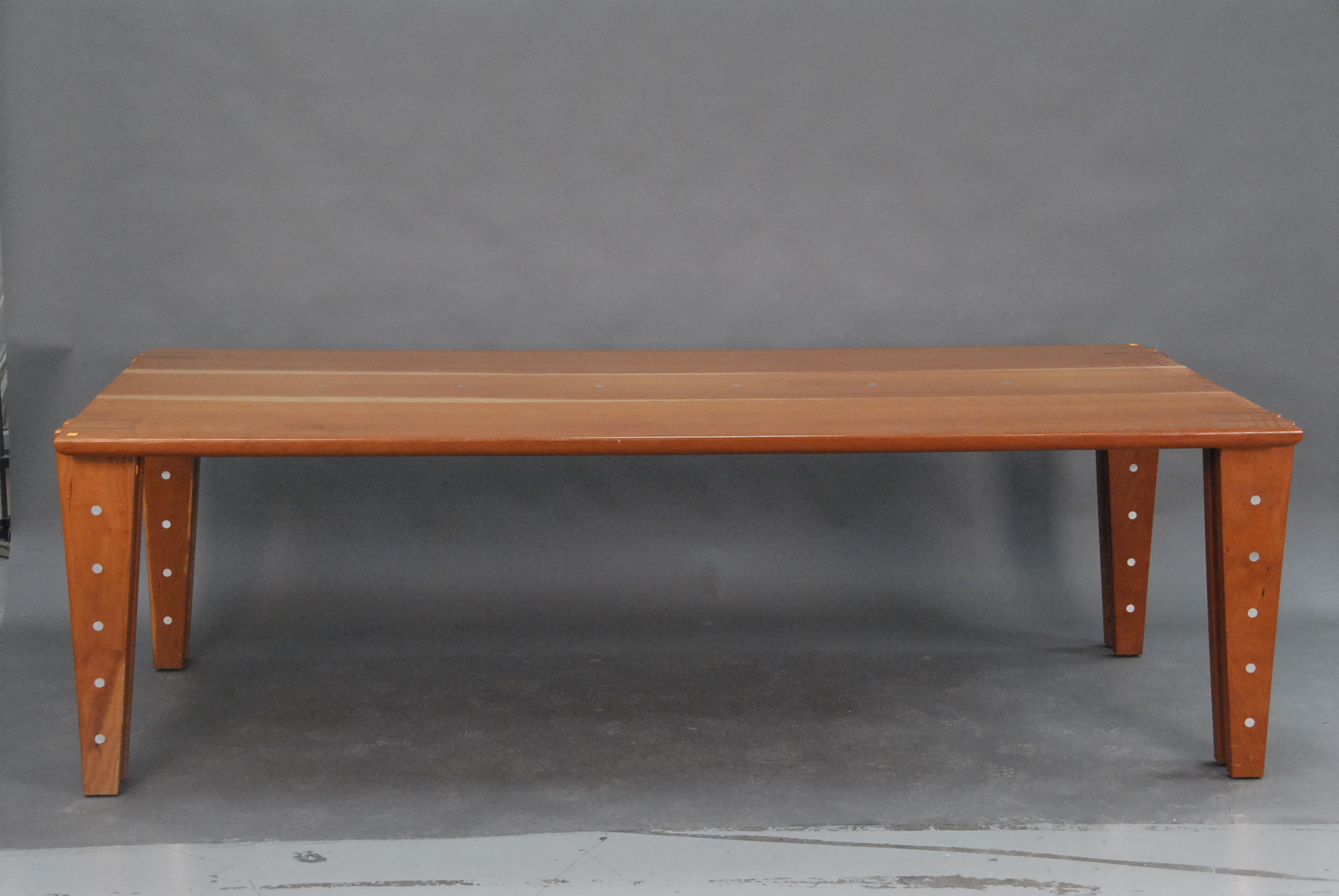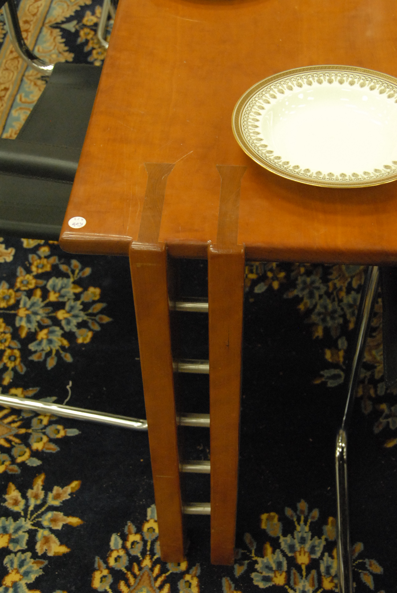 Lot 109: Studio Craft Movement custom dining table of solid cherry with aluminum accents with the top supported by four sets of parallel legs…