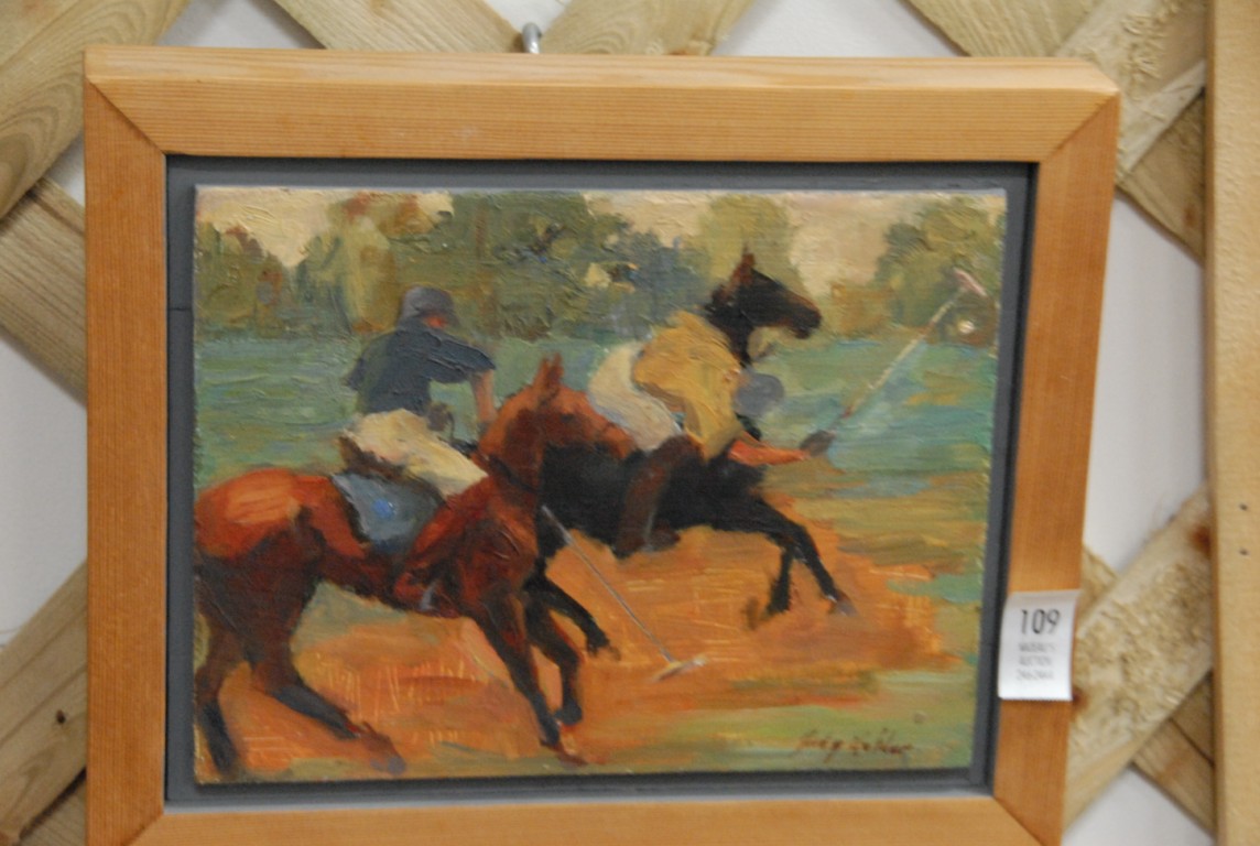 Two paintings, oil on board signed lower right Andrea Anderson, FAST TIME oil on panel signed lower right Judy Holder