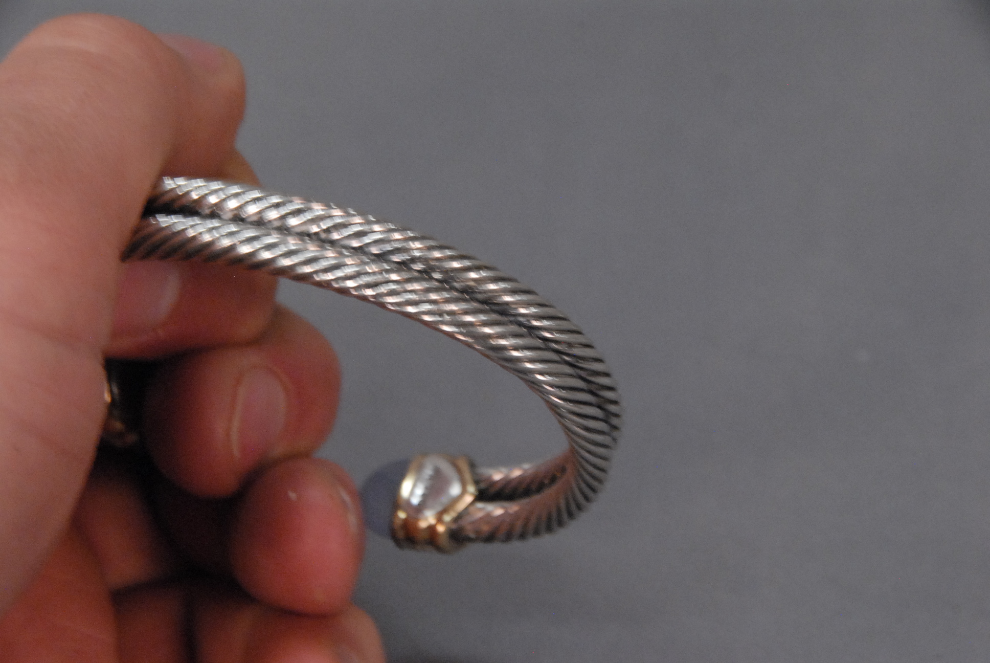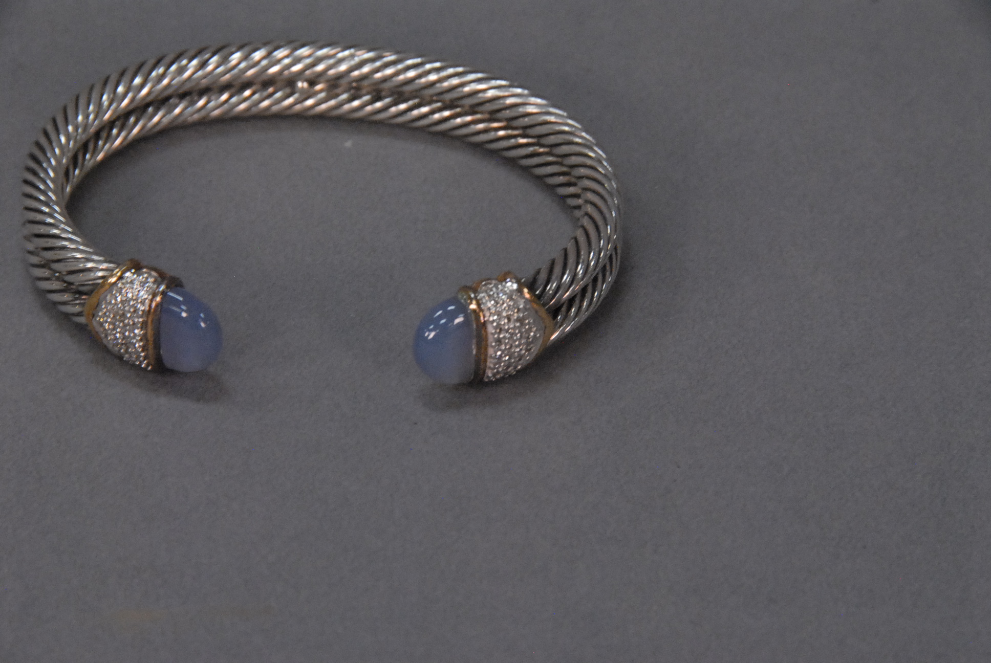 Lot 10F: David Yurman silver double twist bracelet, tips mounted with 18k gold diamonds and cabochon stones, signed David Yurman.