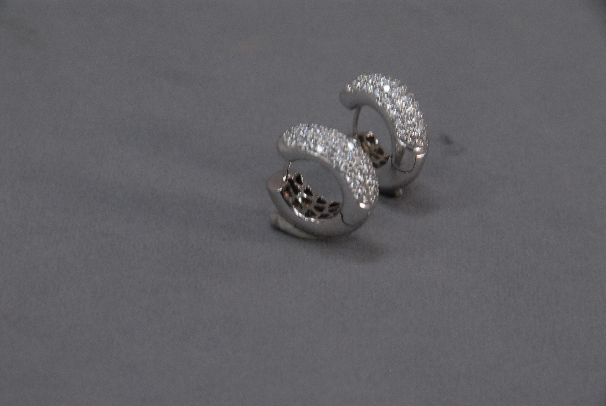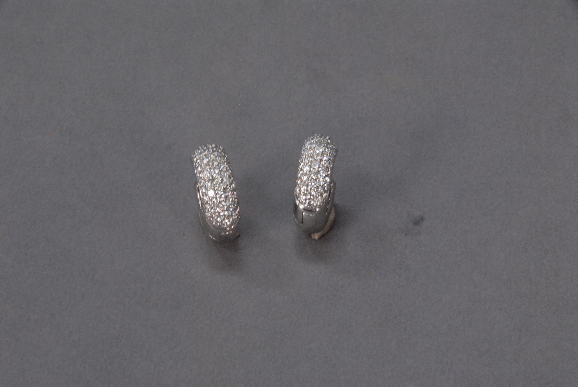 Pair of 18k white gold earrings each set with fifty four diamonds.