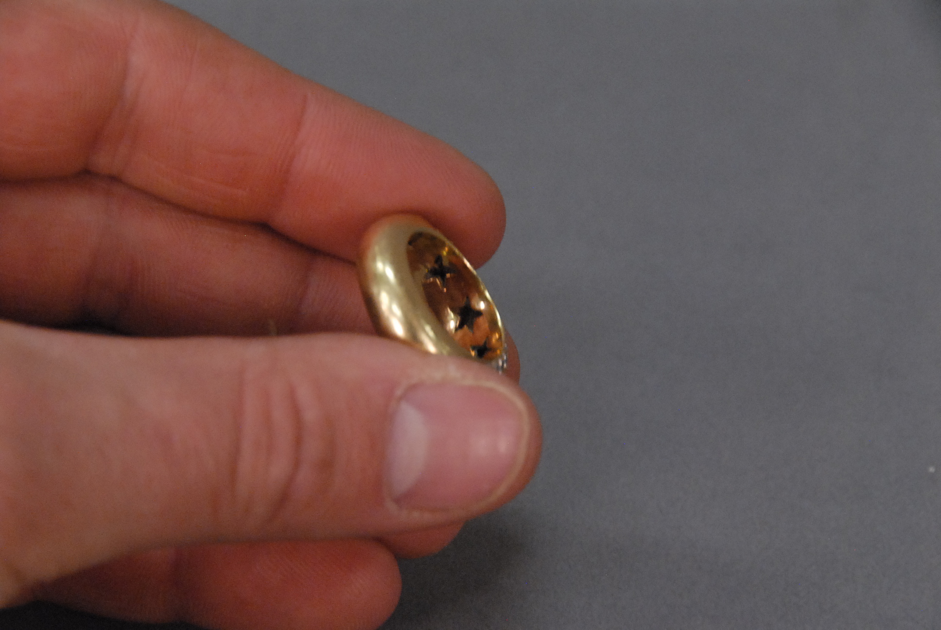 Lot 10N: 18k gold ring set with eighty two diamonds.