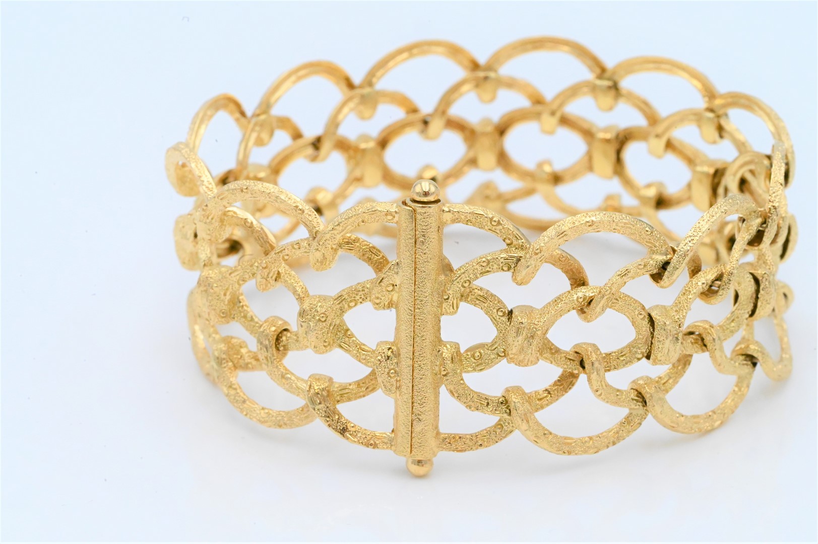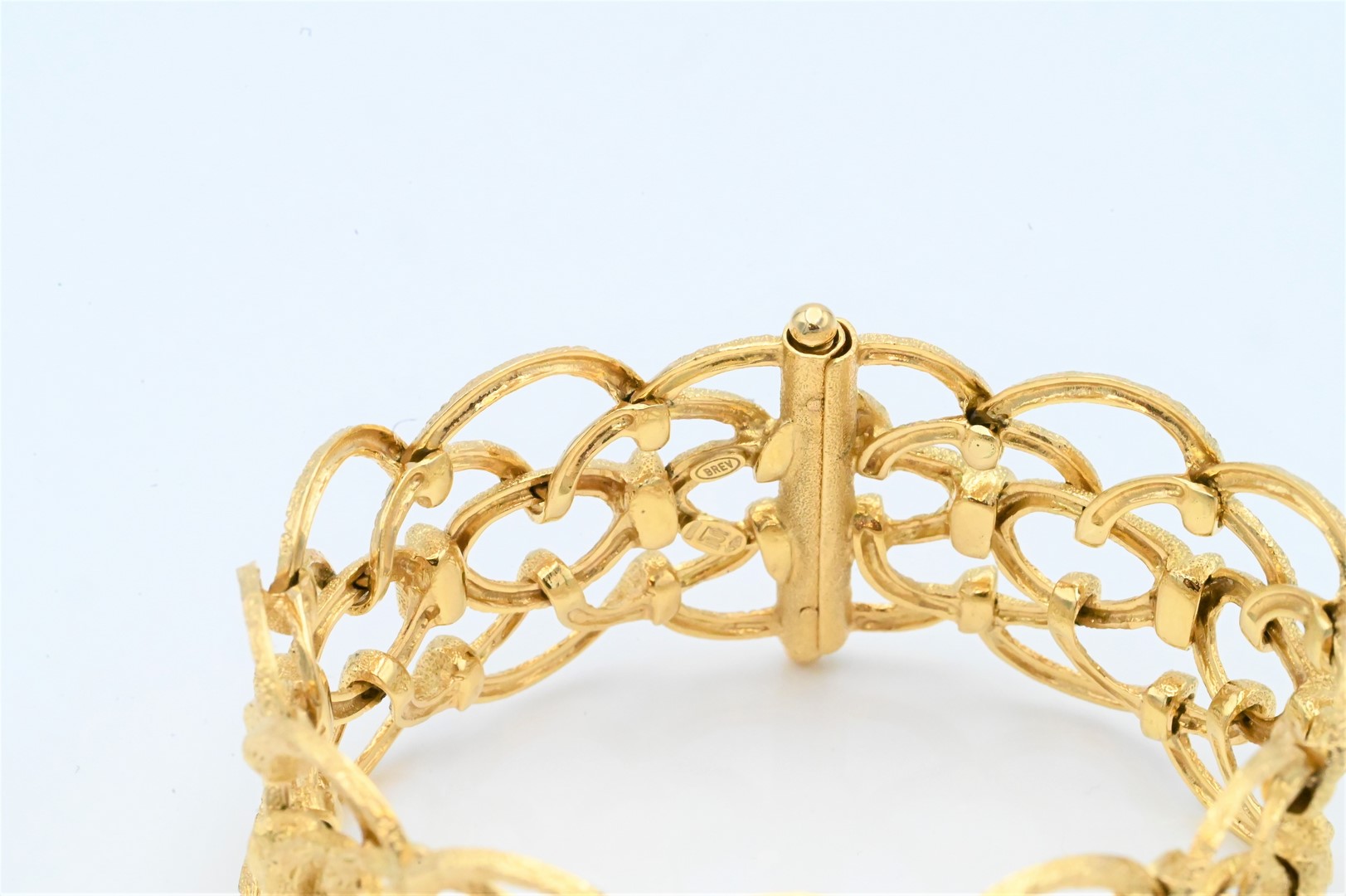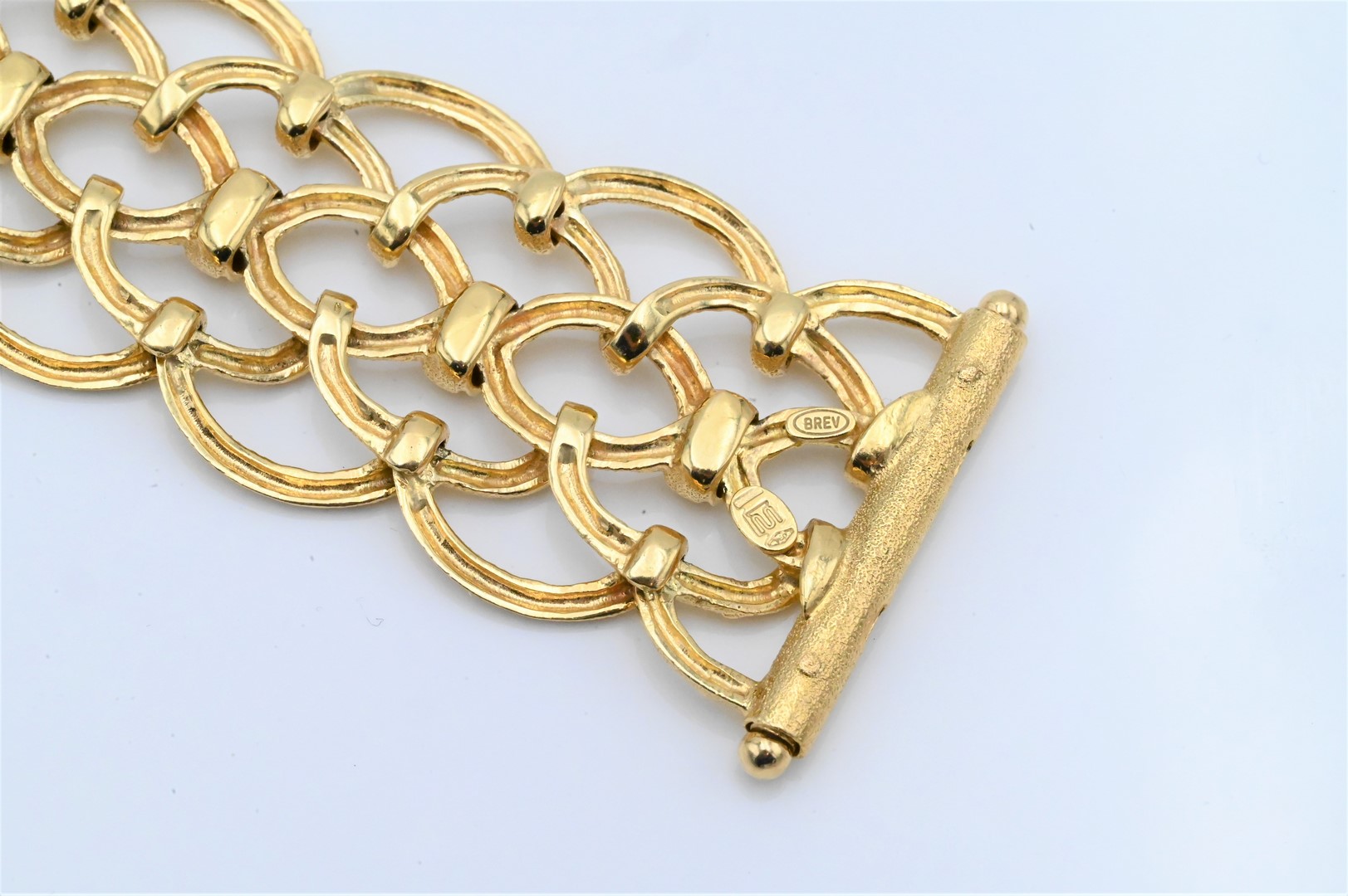 18 Karat Yellow Gold Bracelet made up of three tiers of wave style links having brushed finish marked Brev 750 length 7 1/2 inches, 55.7 grams Condition: good condition