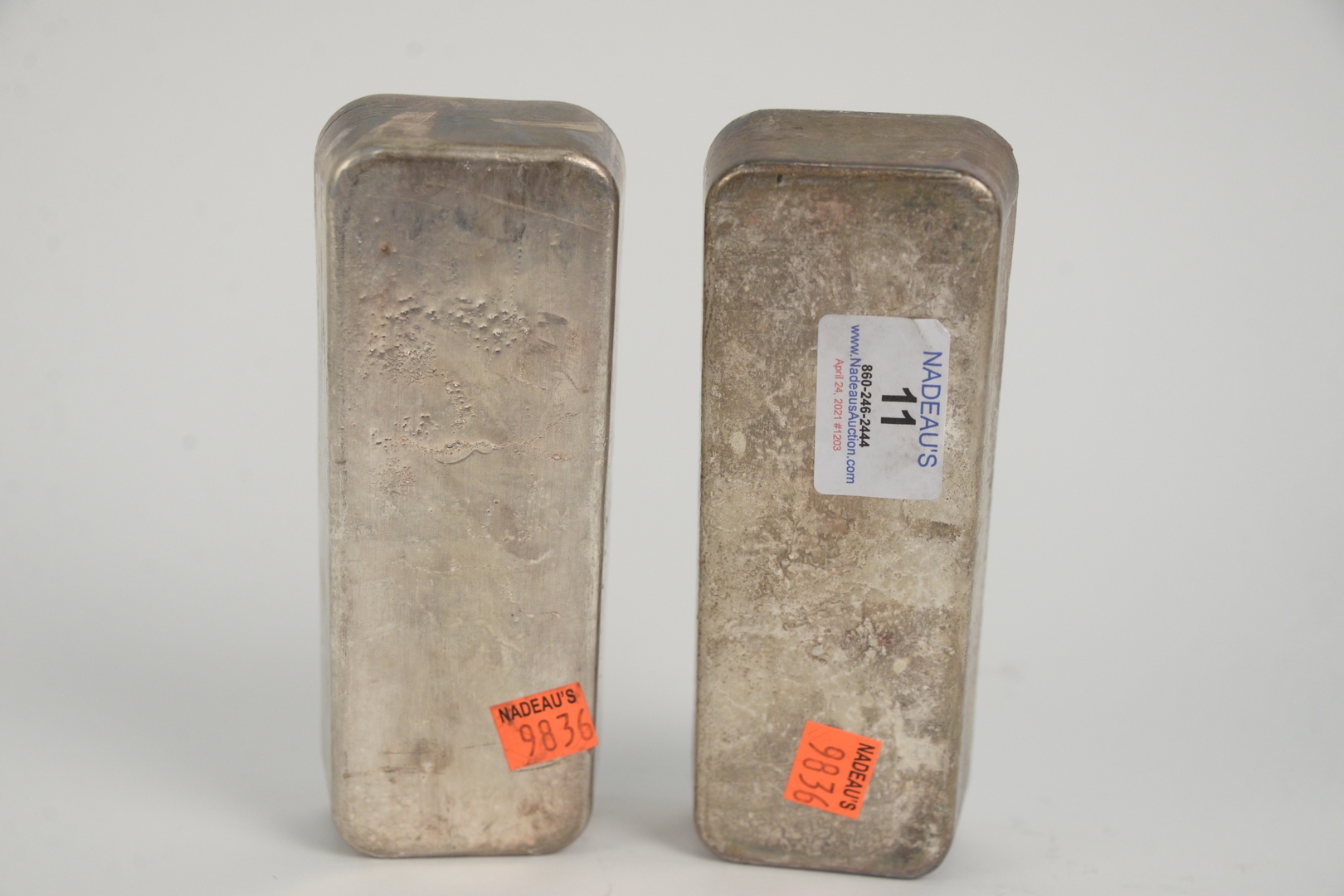200 troy oz. Pure Silver, consisting of two 100 troy ounce bars, marked Bache.
