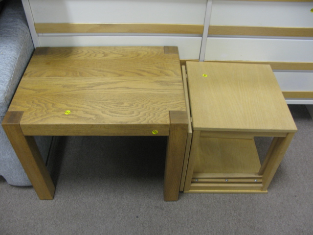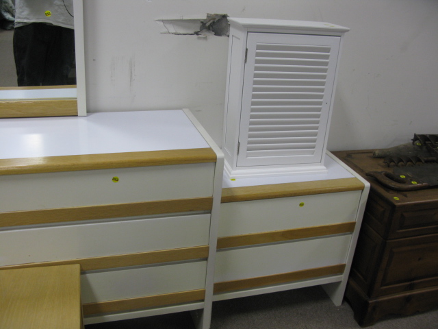 Five piece lot to include chest and mirror, night table, nest of tables, end table and medicine cabinet